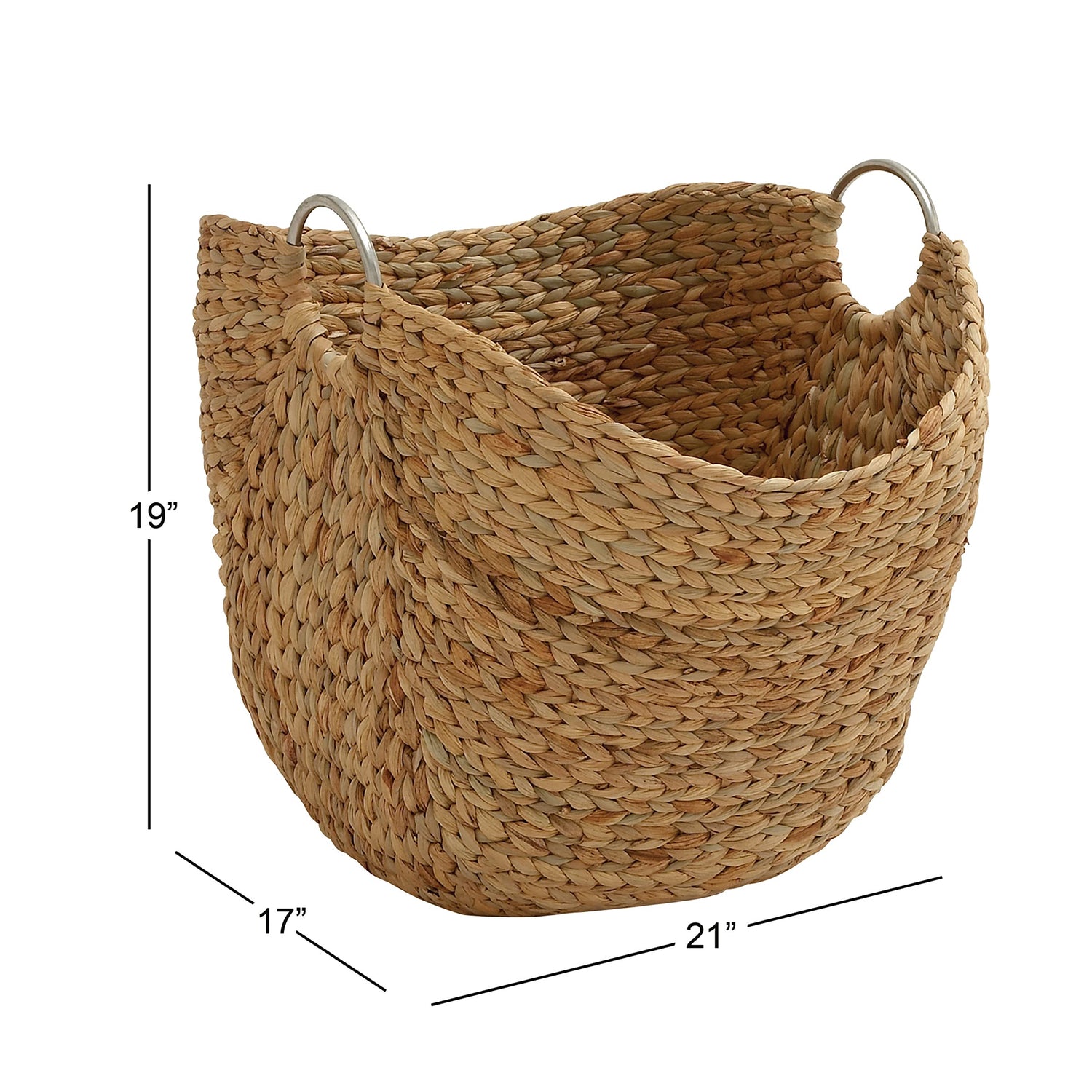 Deco 79 Seagrass Handmade Decorative and Functional Storage Basket Large Woven Basket Organizer with Ring Metal Handles, Basket for Storage 21" x 17" x 19", Brown