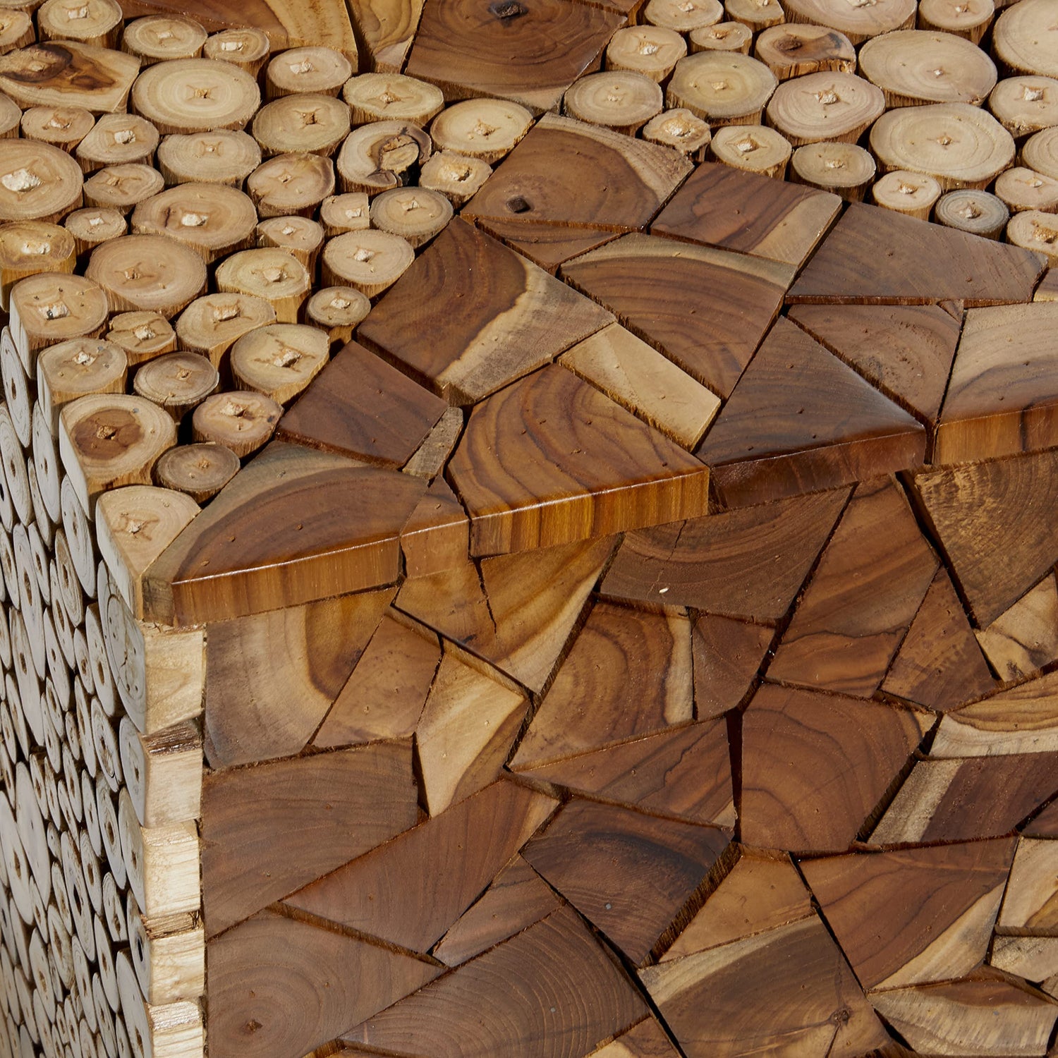 Deco 79 Teak Wood Handmade Side End Accent Table End Table with Mosaic Wood Chip Design, Side Table 14" x 14" x 18", Brown