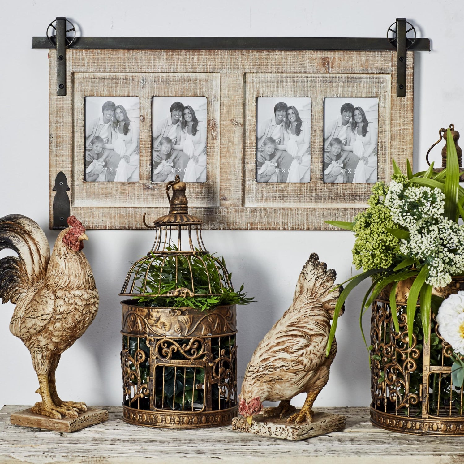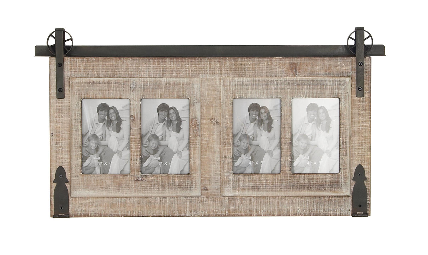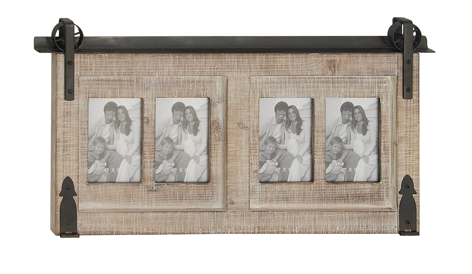Details: Immortalize memories or work of arts with this photo gallery wall frame on your farmhouse-themed home space. This item ships in 1 carton. Mdf wall photo frame makes a great gift for any occasion. Ready to hang with attached D-ring hook; nails and screws are not included. Suitable for indoor use only. This 4" x 6" wall frame can hold 4 photographs. This is a single wall photo frame. Farmhouse style.
