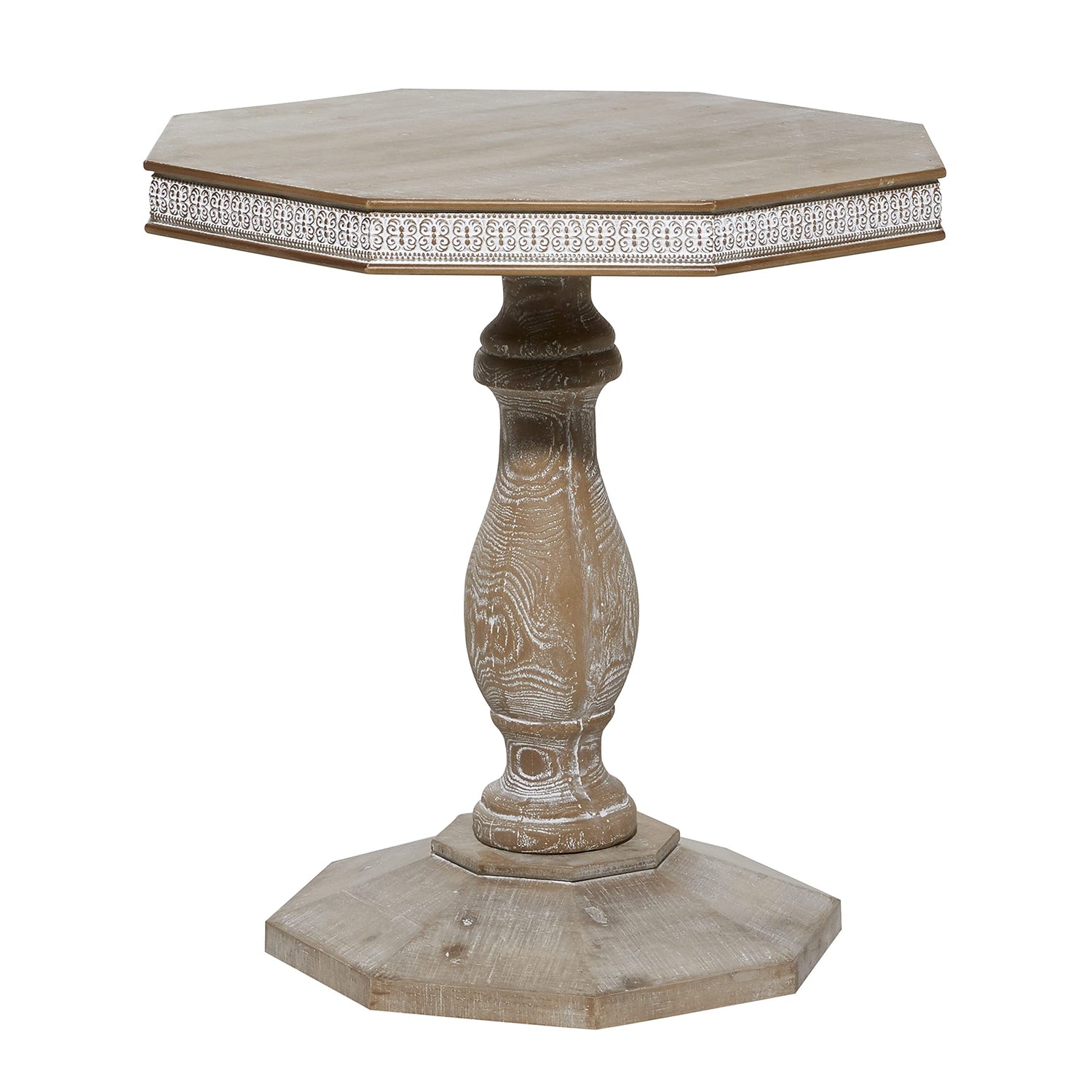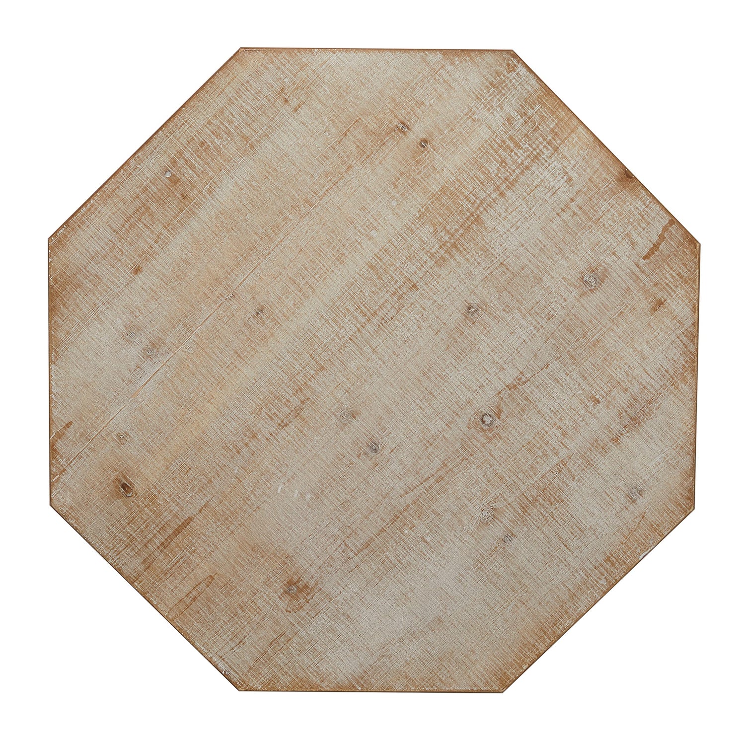 - BROWN LIVING ROOM TABLE: Hexagon table sports a natural brown wood finish, washed to perfection with white distressing for a rustic appeal