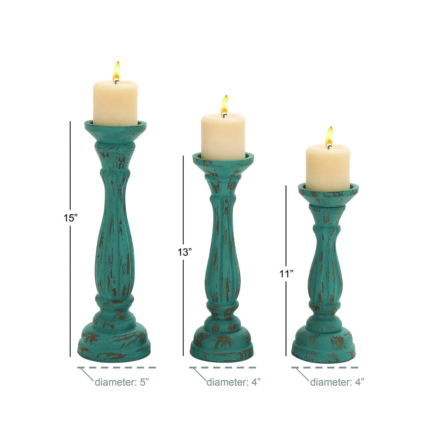 Deco 79 Wooden Decorative Candle Holder Distressed Candle Stand, Set of 3 Candlestick Holder 15", 13", 11"H, Blue