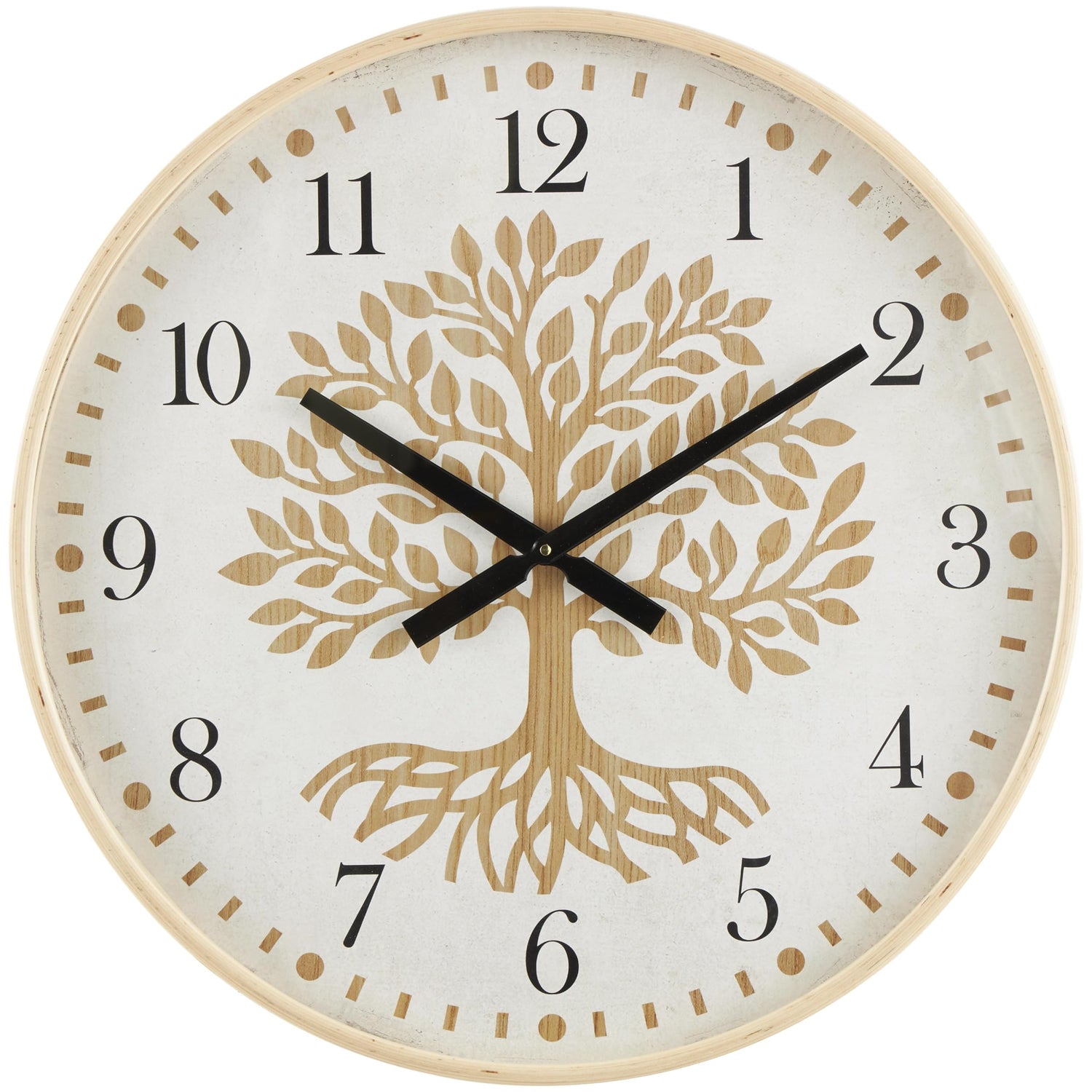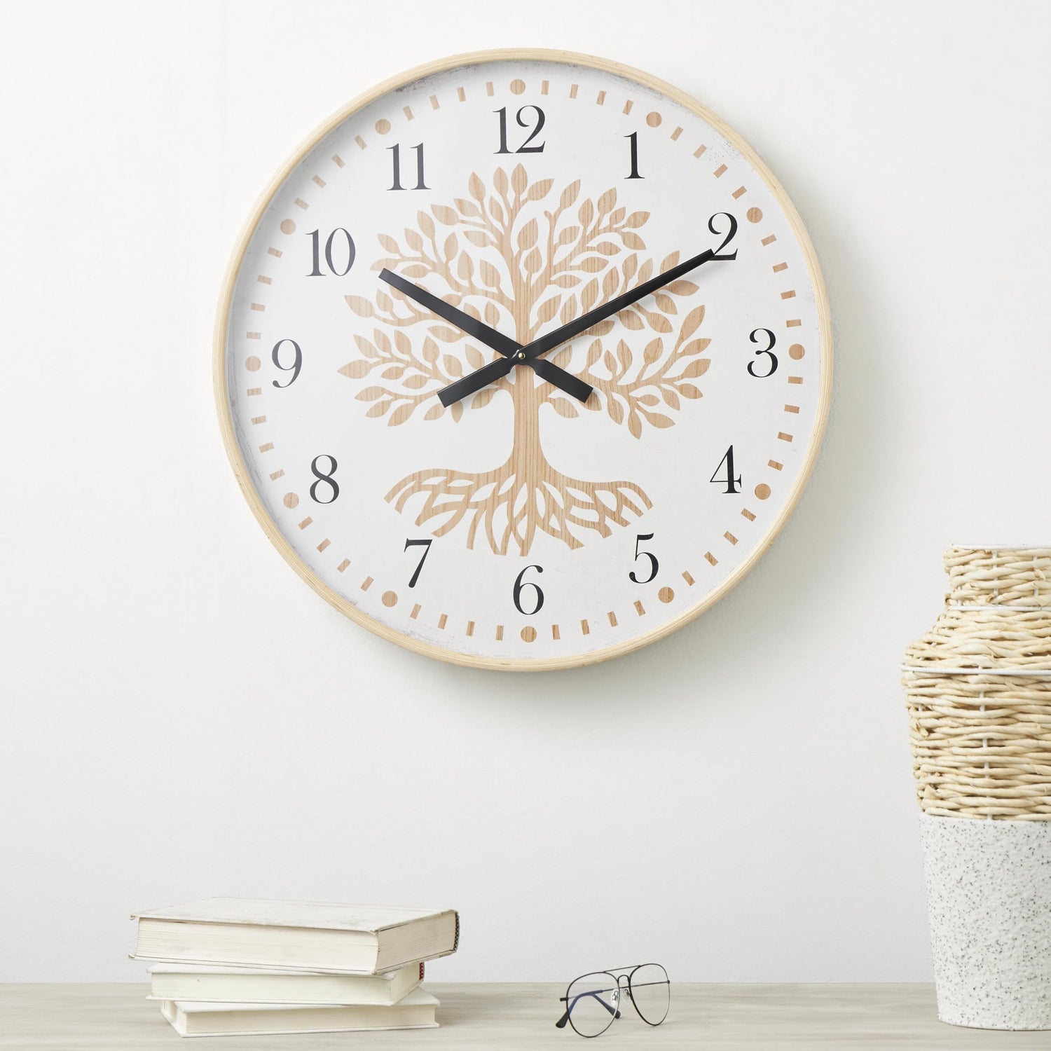 Deco 79 Wooden Tree Decorative Wall Clock Wall Clock for Home with Cream Backing, Wall Clock for Room 24" x 2" x 24", Brown