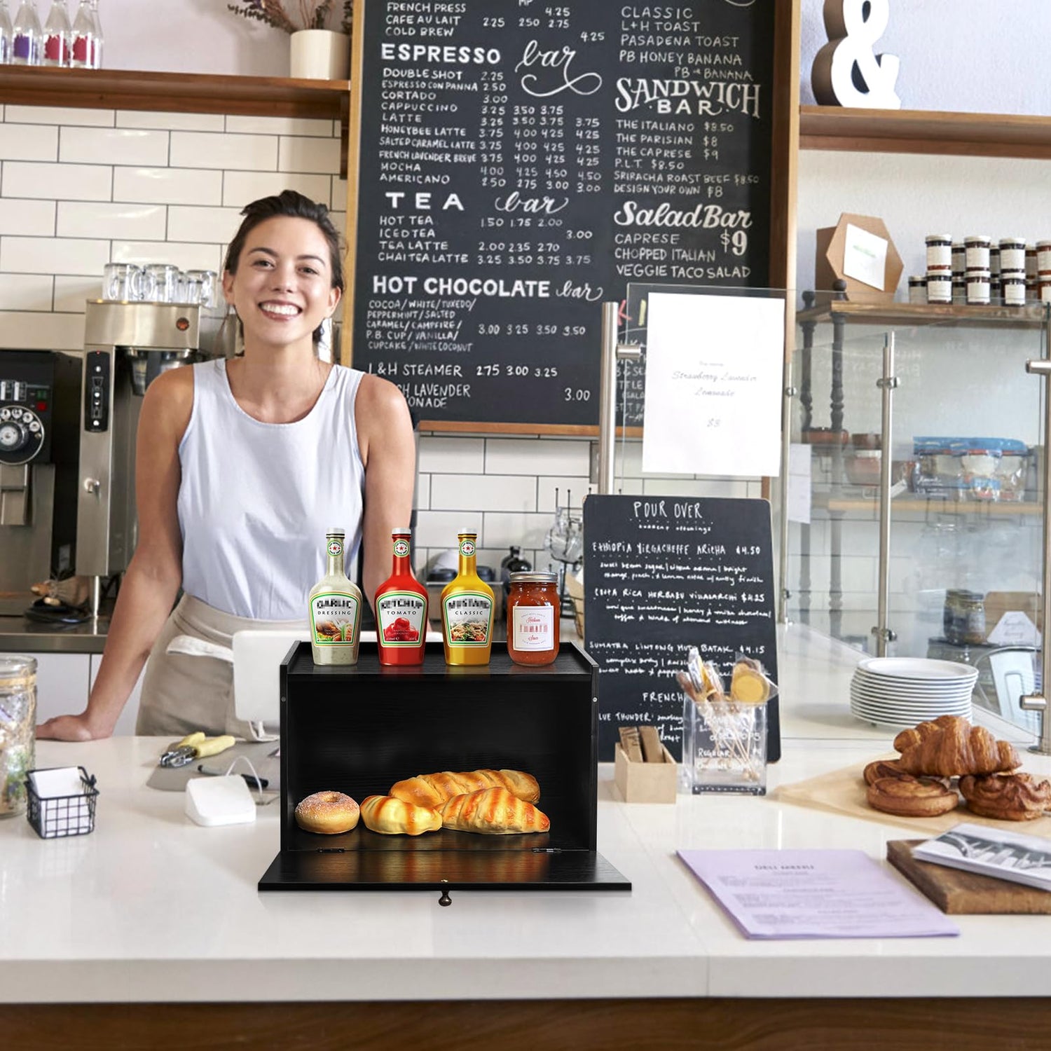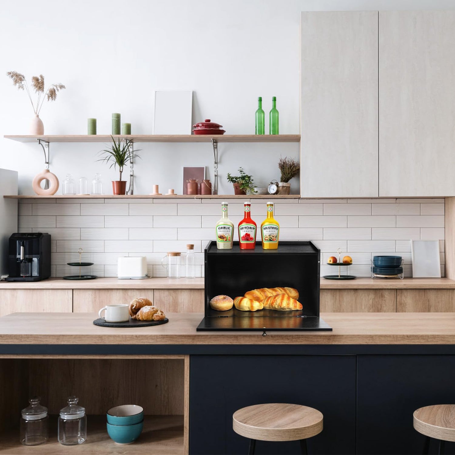 - Multi functional storage: In addition to storing bread and food inside, the top is also designed with a three sided anti drop fence, which can be used to organize and store other seasonings or tableware, improving the flexibility and practicality of storage