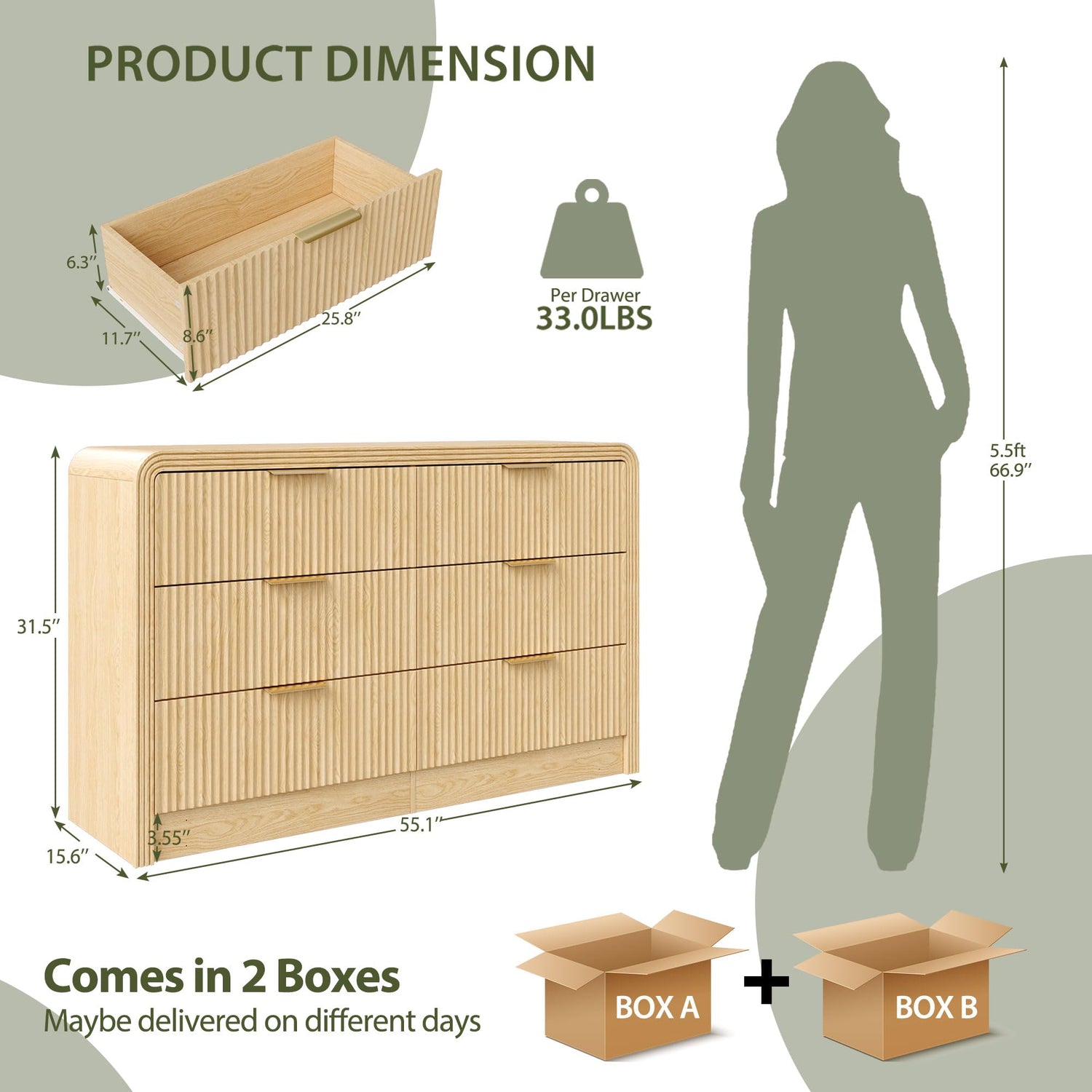 - Unique Fluted Design & Rounded CornersCrafted: with a stunning fluted drawer front and smooth rounded edges, this 6 drawer dresser brings modern elegance and safety into your home. The wave-textured panels elevate any bedroom style while the rounded corners add a secure, family-friendly touch
