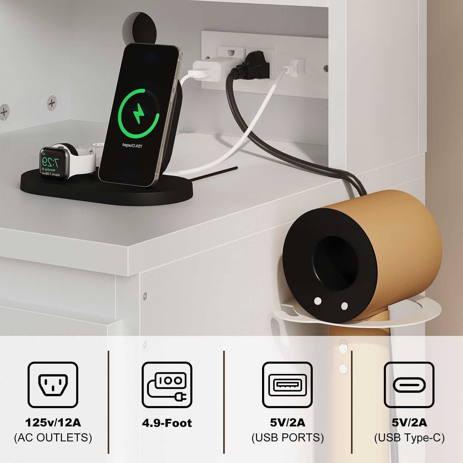 - Built-in Charging Station for Convenience: Stay connected and powered up while you get ready. This makeup vanity desk includes 2 AC outlets, 1USB port, 1 Type-C port, ideal for hair tools, beauty devices, or charging your phone at your fingertips