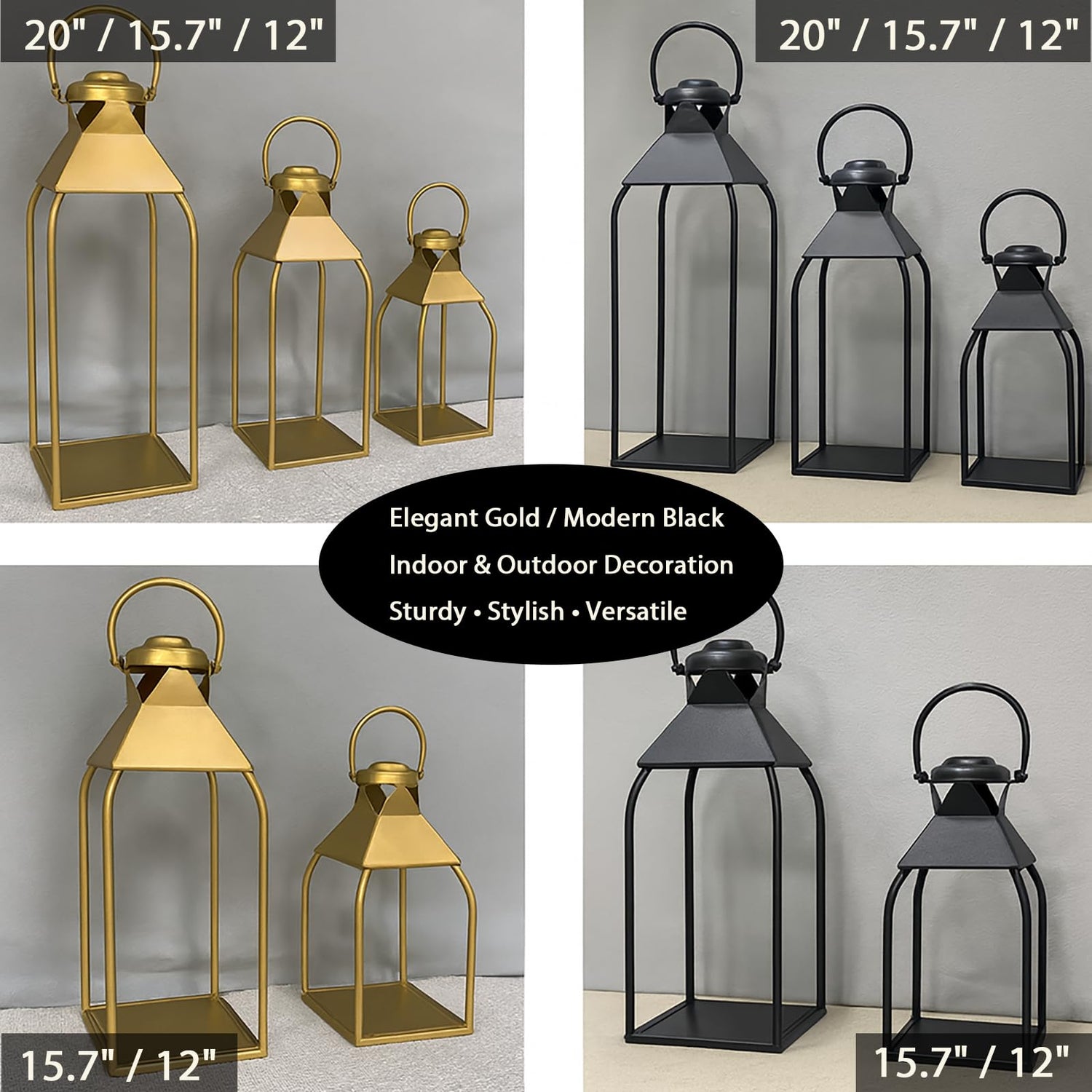 - Set Lanterns: Set 3: 20", 15.7", 12", set 2: 15.7", 12". Blend with farmhouse or modern styles