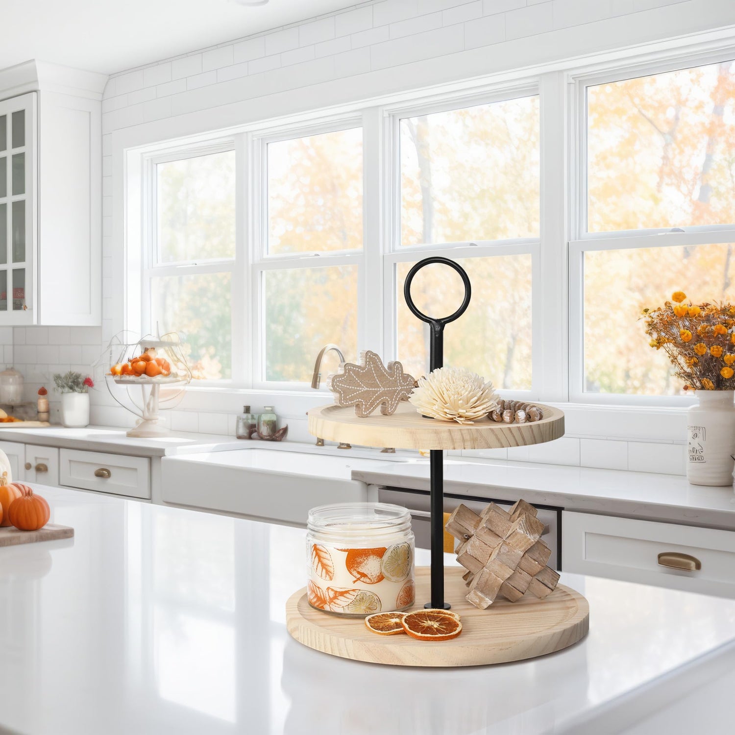 Decorative Wooden Tiered Tray Stand - Beautiful Two Tiered Coffee Table Serving Tray Enhances Your Seasonal Modern Farmhouse Decor - The Perfect Centerpiece for Your Fall Table Decorations