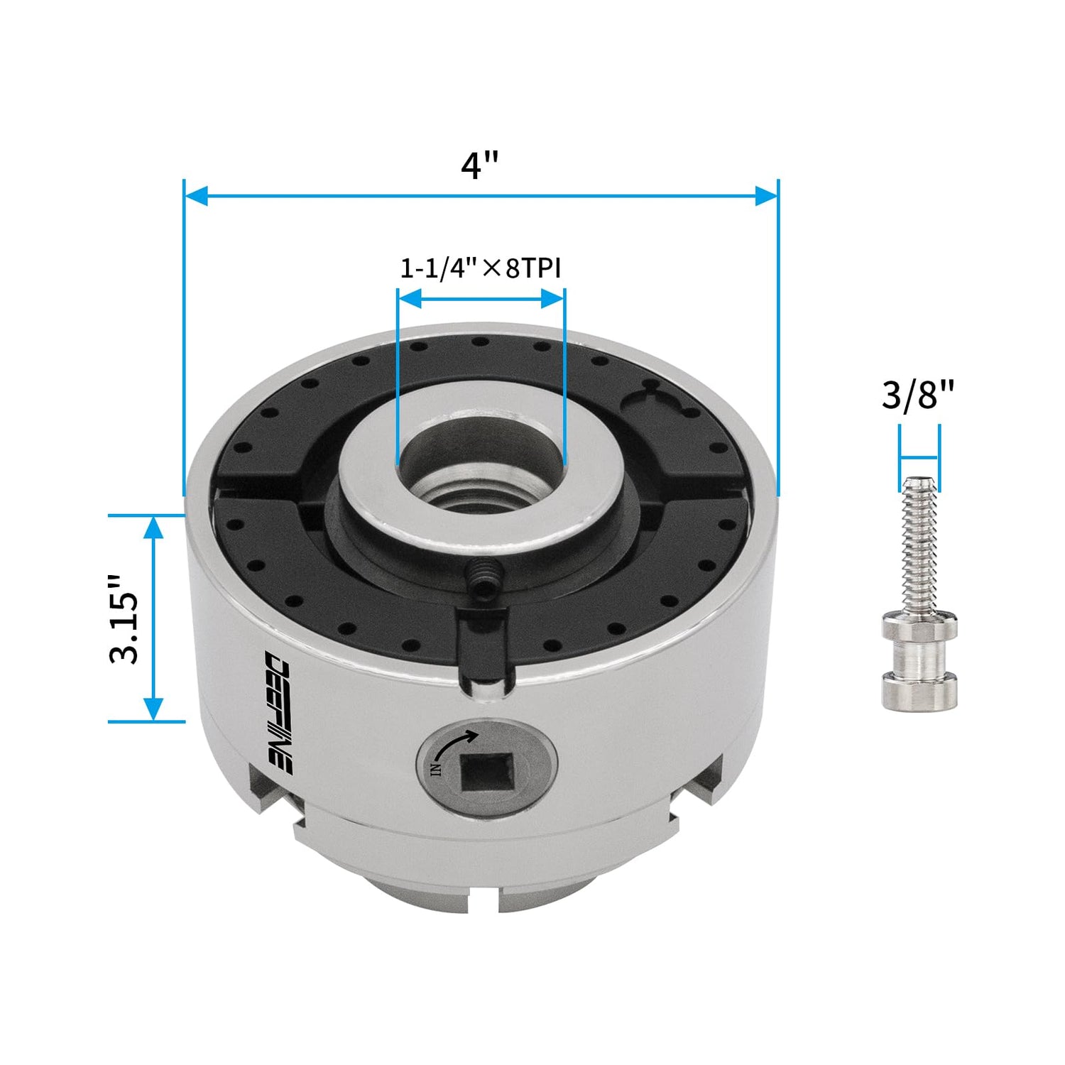 - Compatible with lathe that use 1-1/4'' X 8 TPI thread