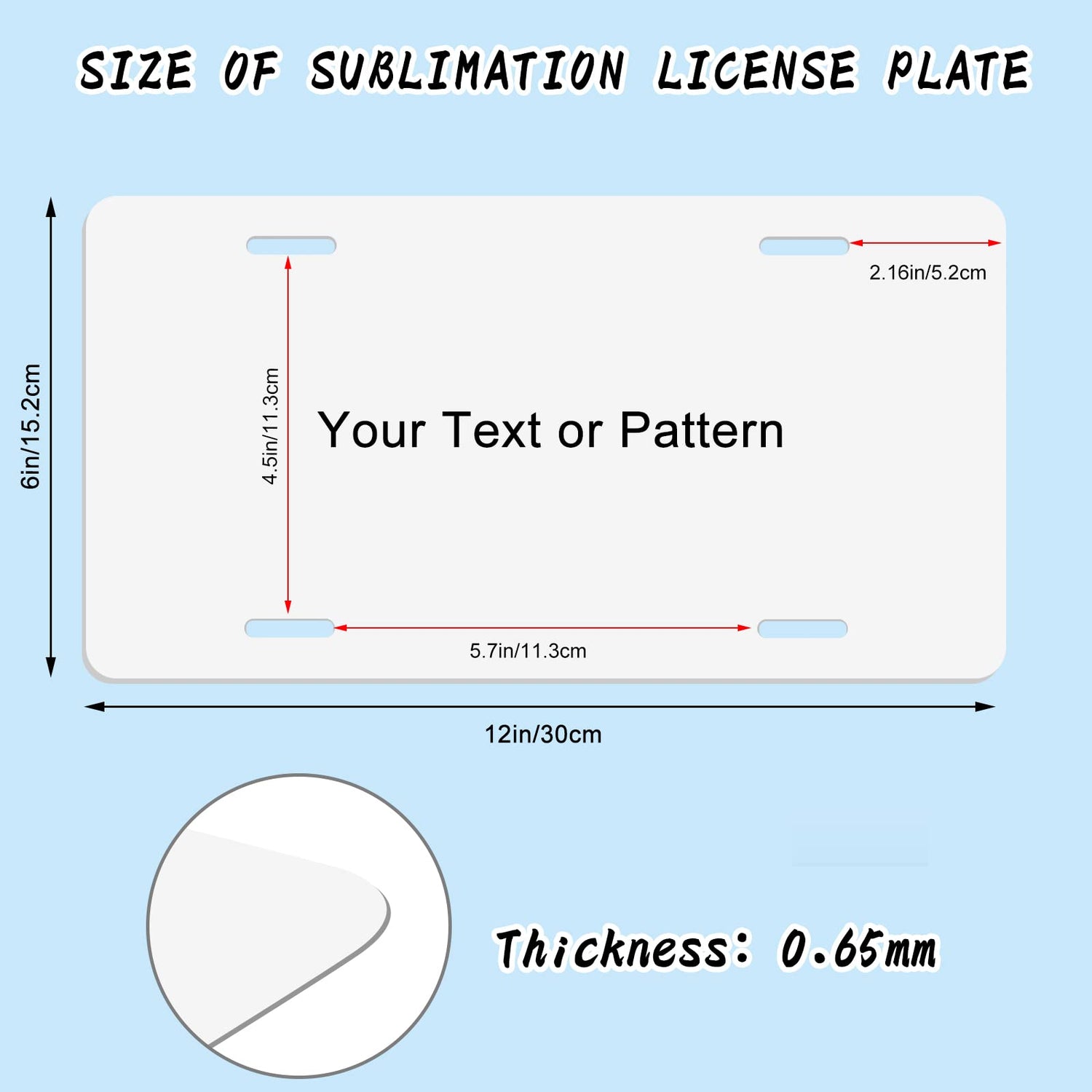 - ✅[Sublimation License Plate Blanks] - 20 Pack sublimation license plates to decorate your car's front license plate or most vehicles. The size of our each license plate is about 12 x 6 inch / 30 x 15 cm. Suitable size to dress up your car, you can use them to design your own aluminum car license plate.