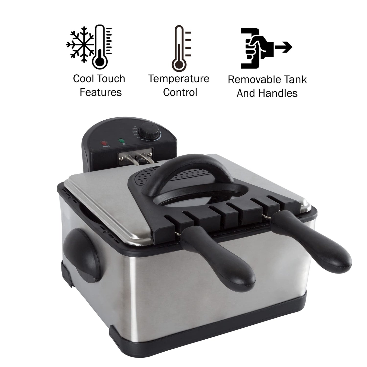 - EASY TO USE - This electric deep fryer includes a frying guide and 3 deep fry baskets, letting you get started on your favorite recipes. The dual indicator lights power on red when the appliance is plugged in and green as it reaches the set temperature.