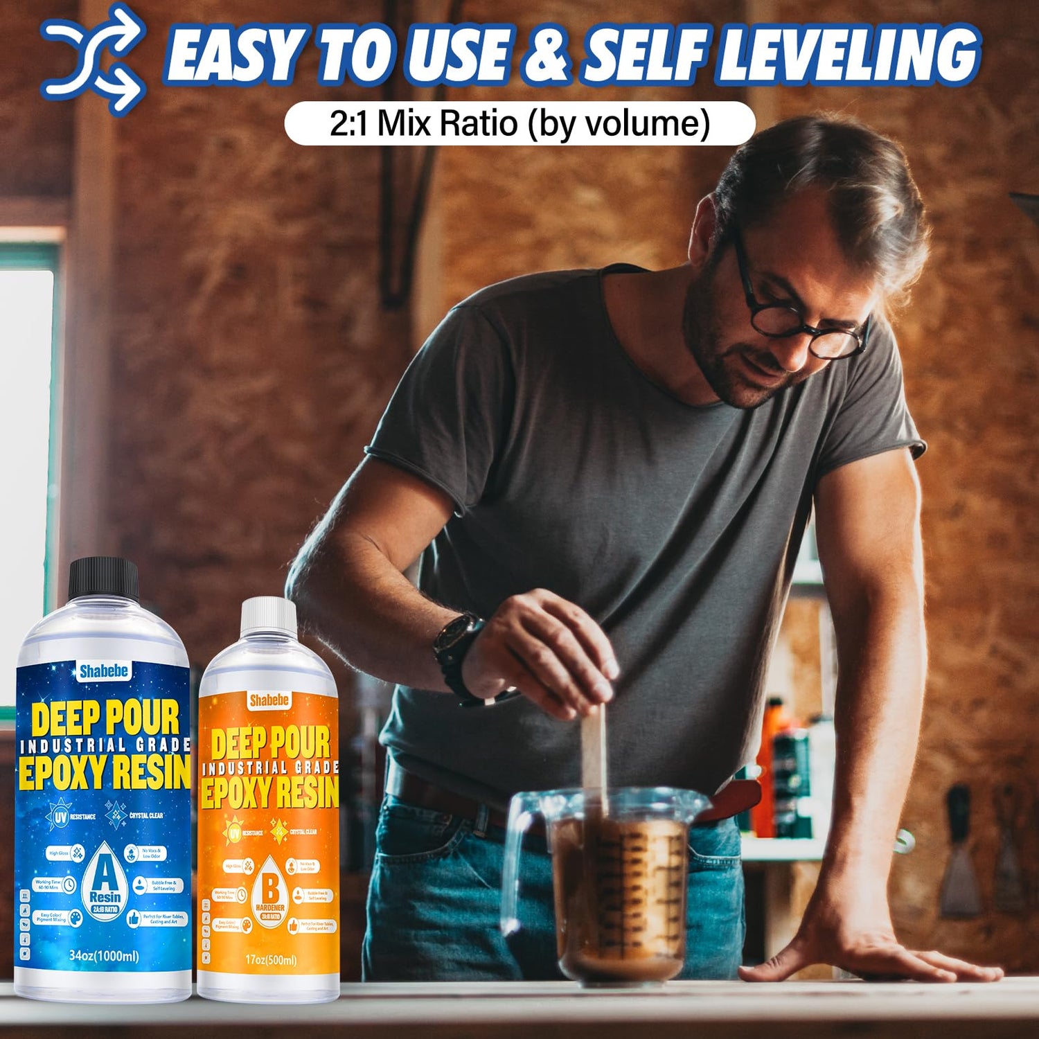 Deep Pour Epoxy Resin 51OZ, Shabebe 2024 Upgarde Epoxy Resin for 2-4" Pour Depths, Bubble Free & High-Gloss Art Resin, 2:1 Food Safe Casting Resin for DIY Molds, River Table,Wood,Bar Tops, Countertops