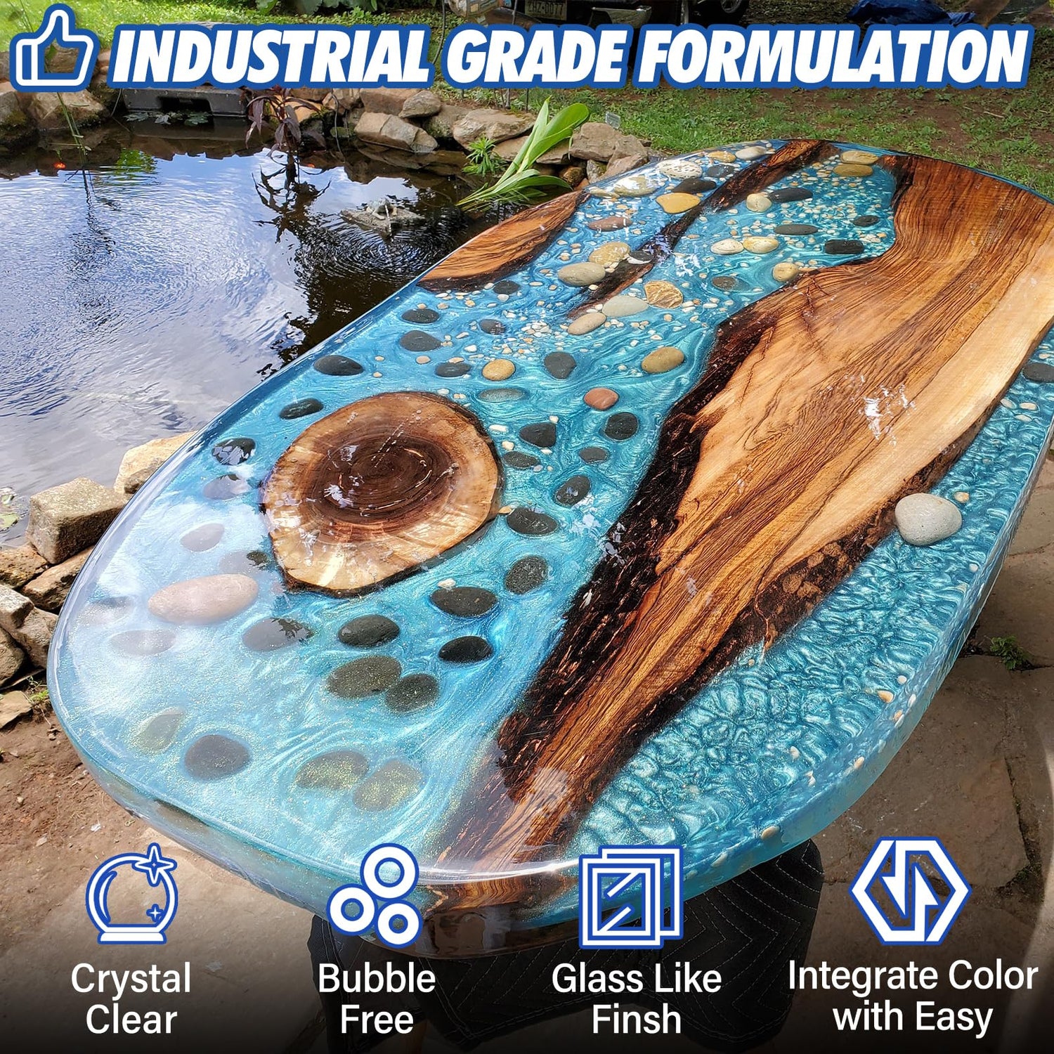 - 2-4inch Deep Pour & Ideal Usage: Our extra deep pour resin formulation allows you to pour 2-4 inches at a time without worrying about thickness limitations. It is ideal for river tables, live edge tables, bar tops, countertops, wood filler, charcuterie boards, small casting. NOTE: For best results, please keep room temperature at 20℃/68℉ or lower.