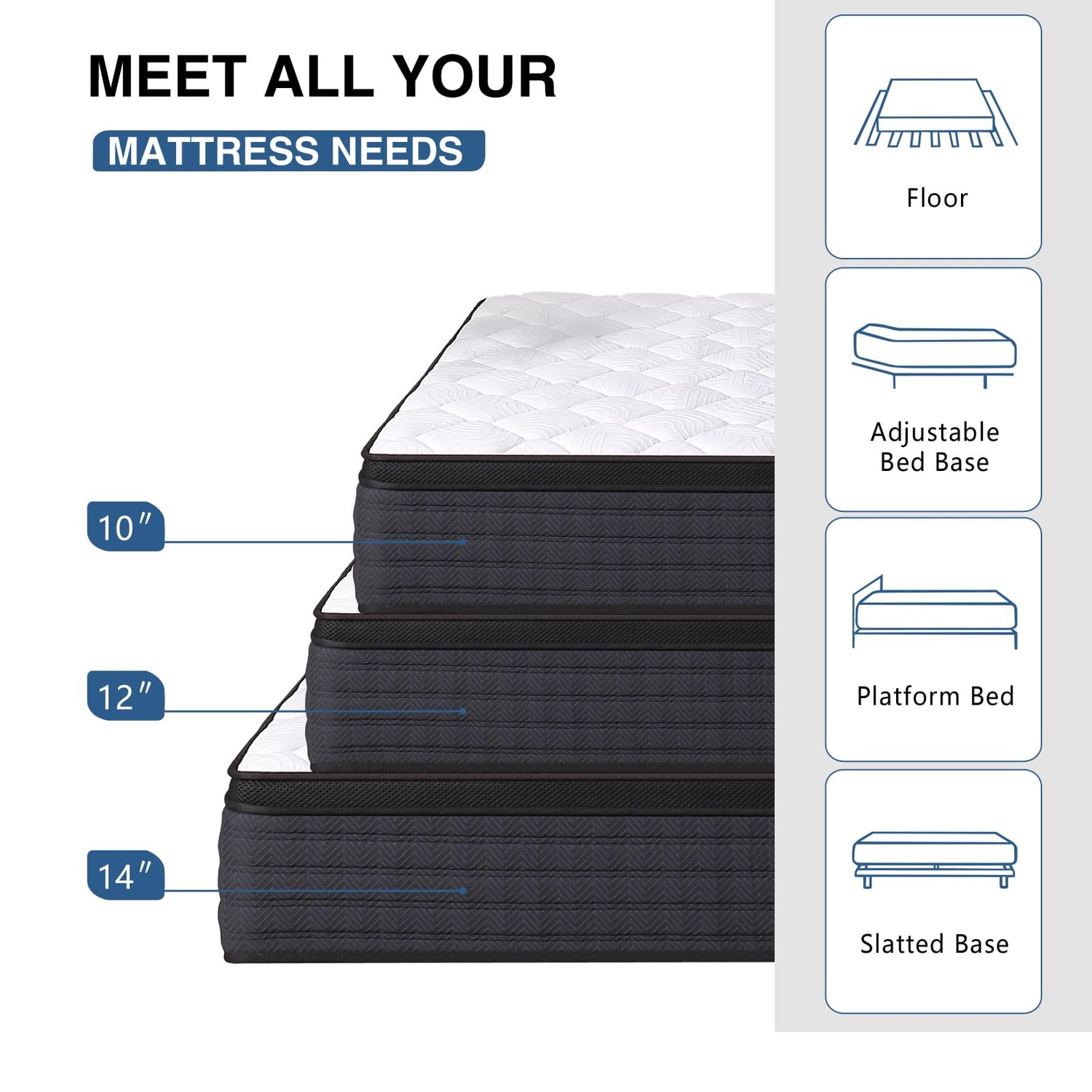 - 【SUPPORT & DECOMPRESSION】DEHIJU 10 inch Queen size mattress with upgraded independent pocket springs, combined with cooling gel memory foam, effectively eliminate joint discomfort, relieve stress and reduce insomnia, providing you with a comfortable and peaceful sleep experience.