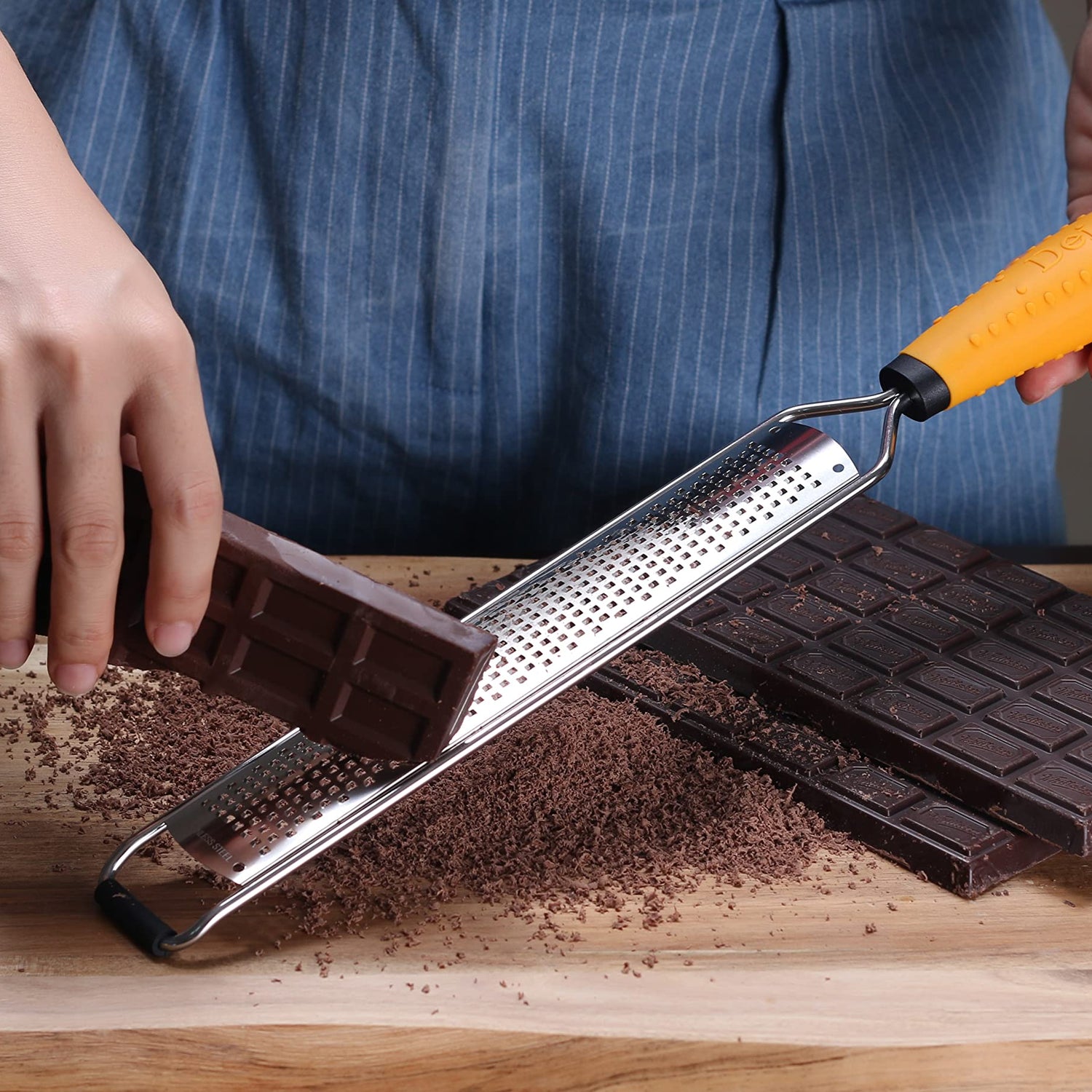 - Zesting & Grating Have Never Been So Simple ✔ Shear the hardest cheese into grated fluff or get nicely shredded carrots using almost no pressure. Simply zip the zest grater cutter-knife across the rinds of oranges, lemons, and limes. In seconds, you can have finely grated garlic or ginger or treat yourself to a favorite dessert topped with fluffy chocolate flakes.