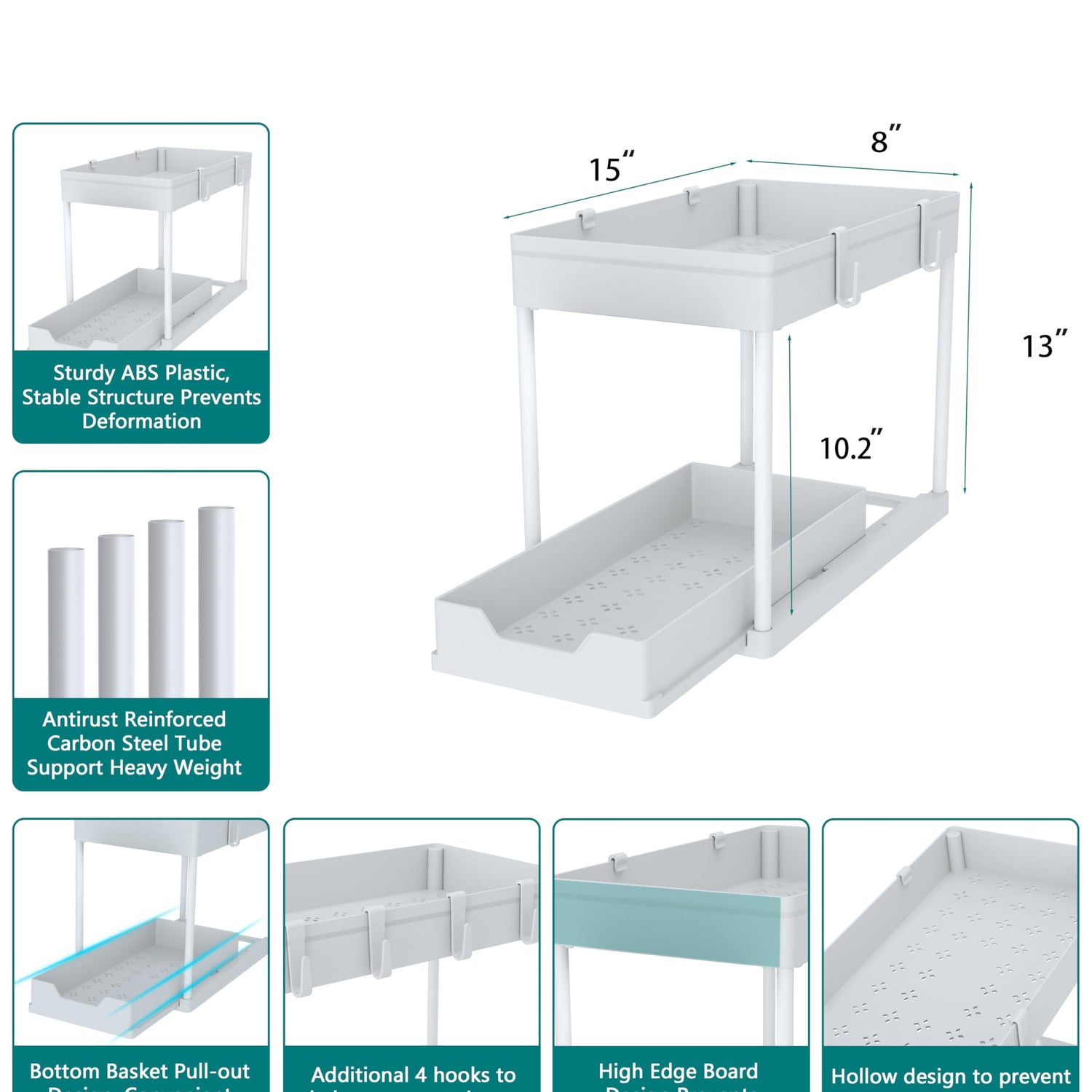 - Large Capacity - Bottom area holds items height up to 10.3 inches. Size: 15"L x 8"W x 13"H.