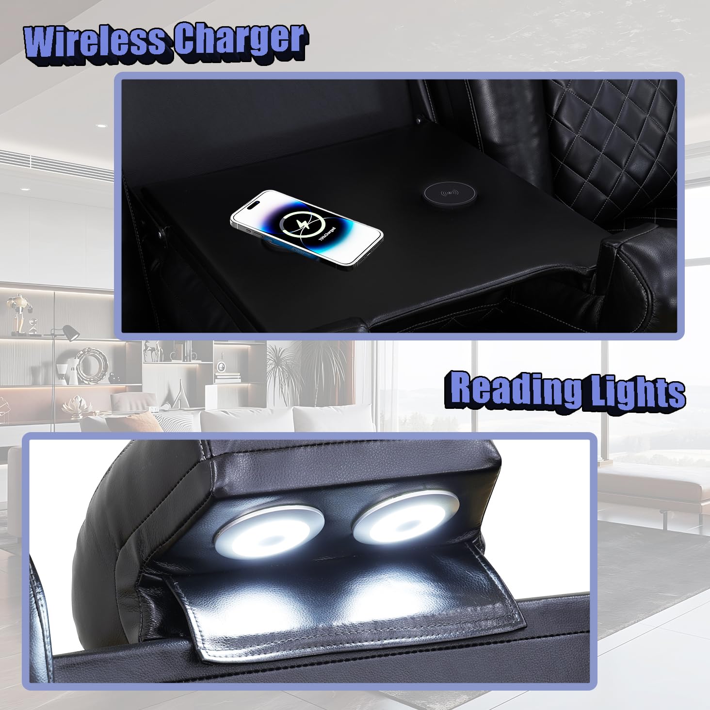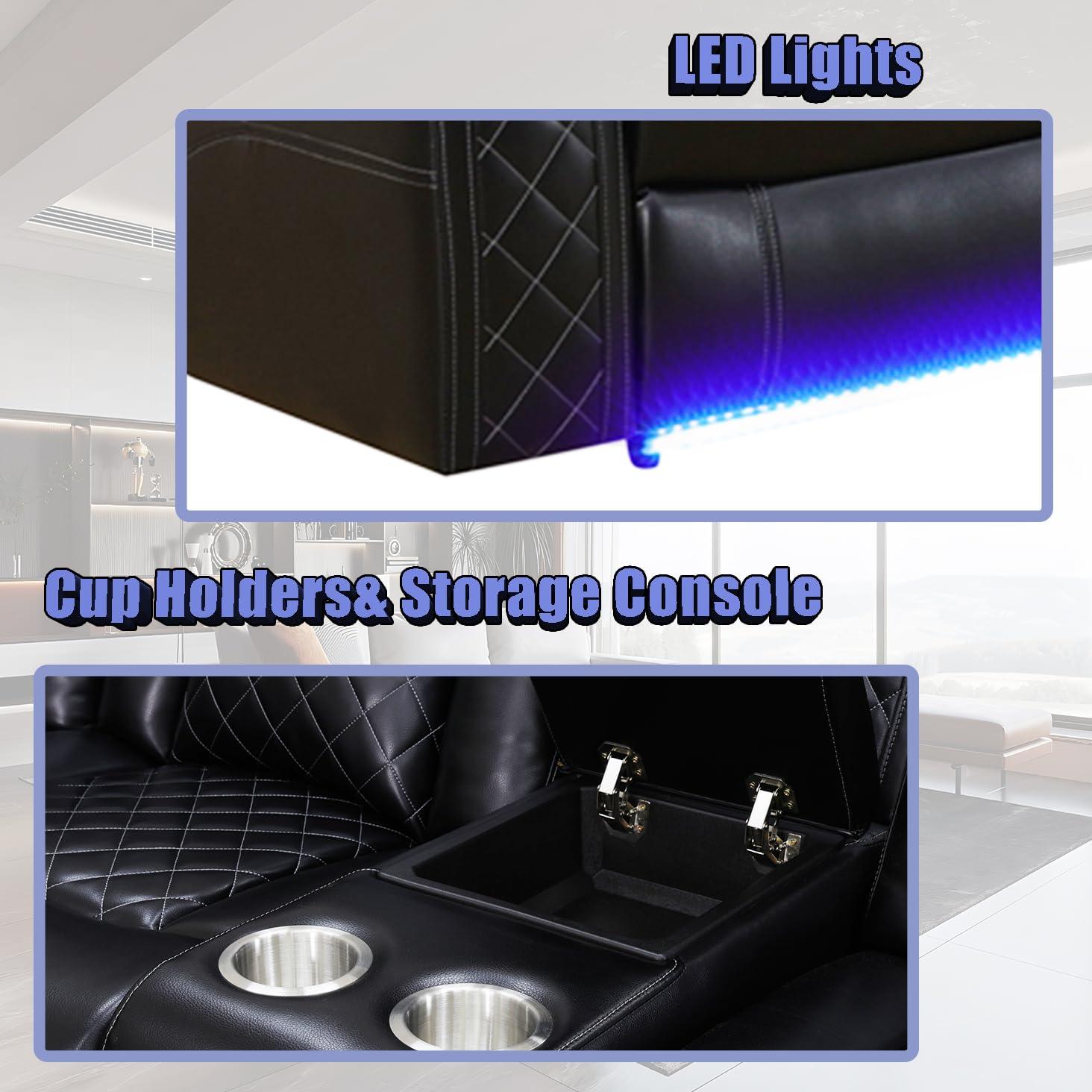 Dekmxas Mordern Breathing Leather Sofa Sets, Living Room Furniture Sets, Power Reclining Sectional Sofa, Loveseat with Cup Holders/Storage Console/LED Light for Living Room
