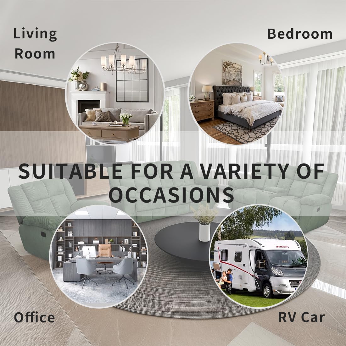 Dekmxas Recliner Sofa Set, Living Room Furniture Sets,Manaul Reclining Couch Green Corduroy Reclining Couch Living Room Sofa Set with 5 Recliner Seats/Cup Holders/Storage Console/Drop-Down Table