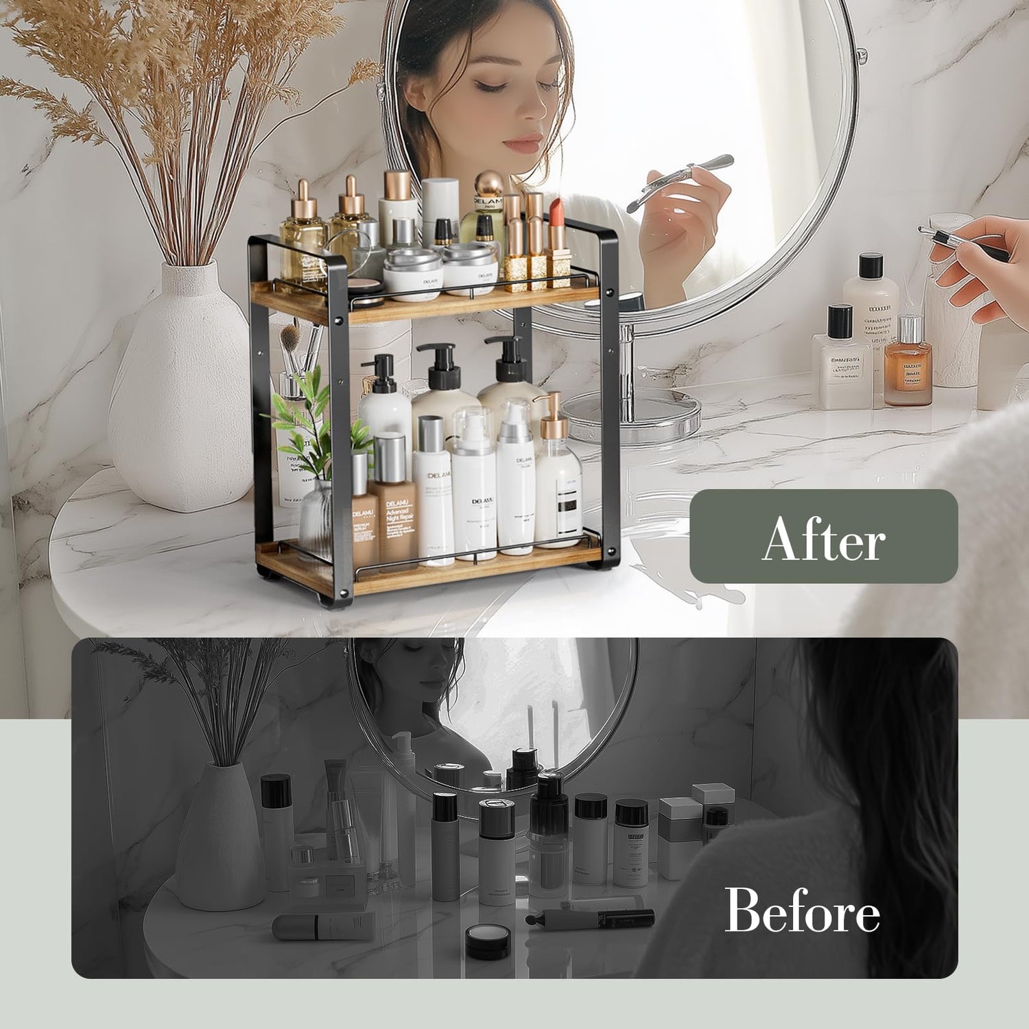 - Stylish & Durable Build: Made from premium wood and metal, this skincare organizers shelf is both sturdy and elegant. Its simple design complements any decor, while its robust construction ensures long-lasting organization and storage solutions. Whether in your bathroom, bedrooms, kitchen, or coffee station, it's both functional and decorative