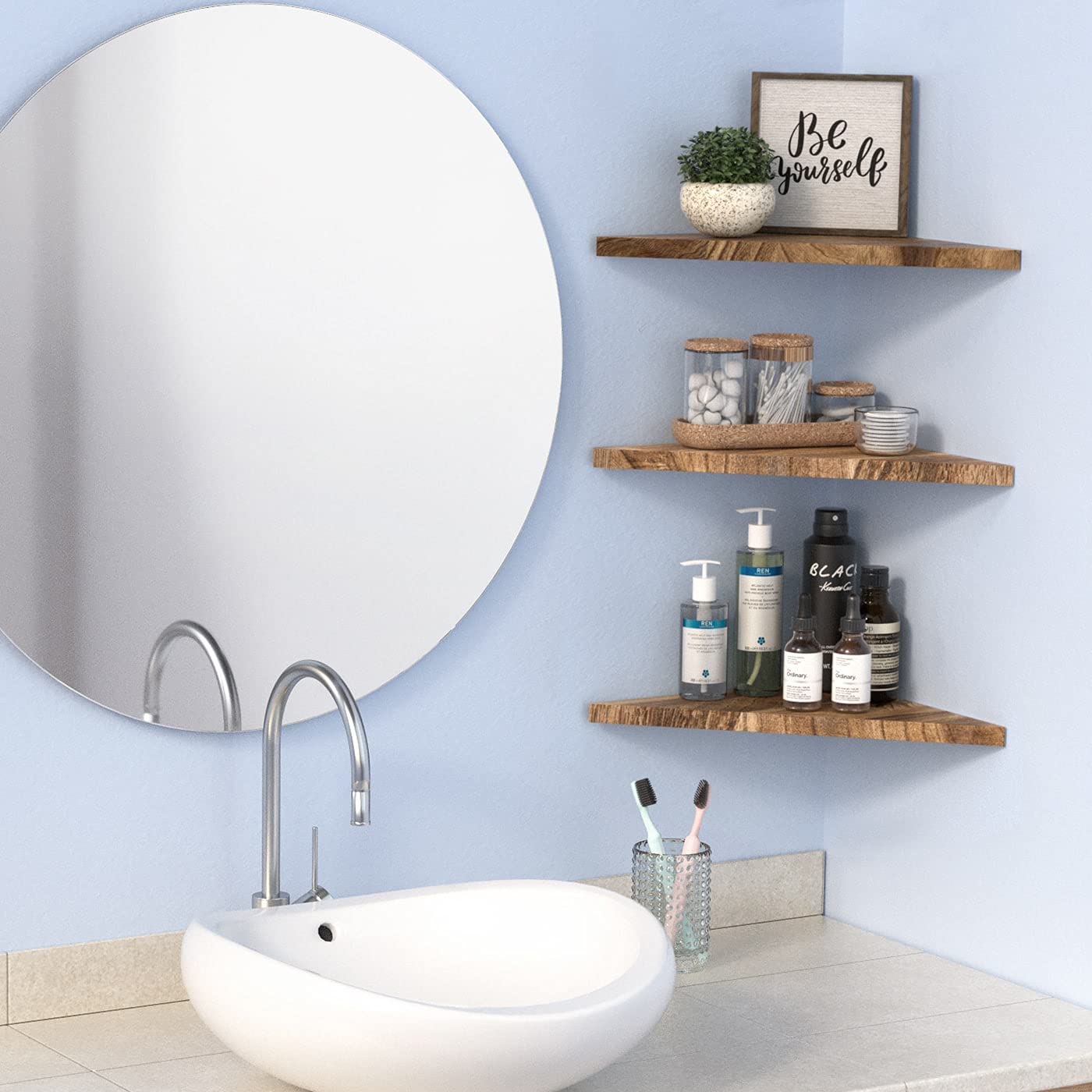 - [VERSATILE CORNER SHELVES] Great use for living room, bathroom, bedroom, office and kitchen for organizing and showcasing decorative products, small plants, toys, spice jars and more. It can be placed together in a sequence or separately depending on your preference.