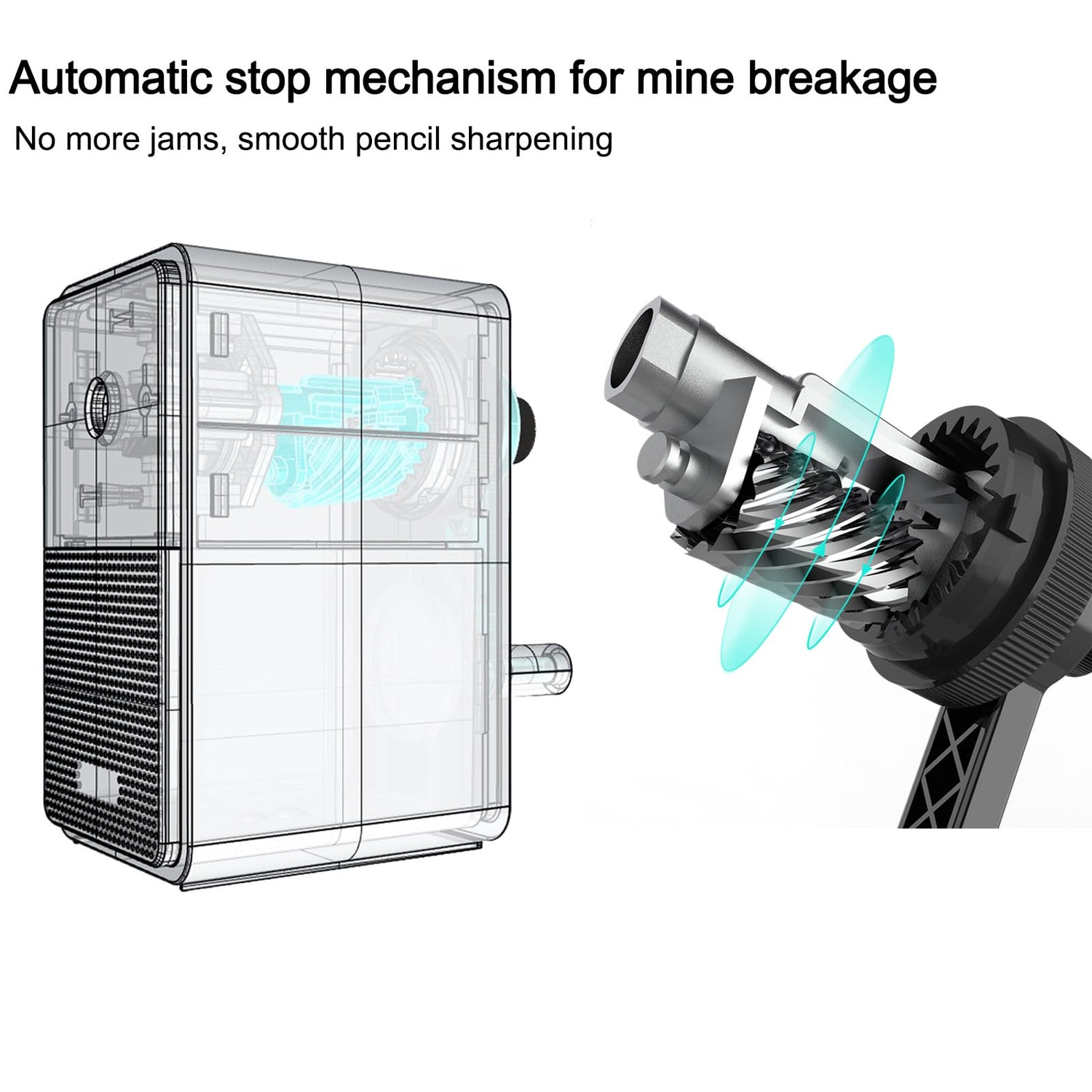 - 【Material】Adopting alloy steel rolling blade and ABS material, the pencil break will stop turning automatically without jamming. Ergonomic pencil sharpener crank, comfortable to use.