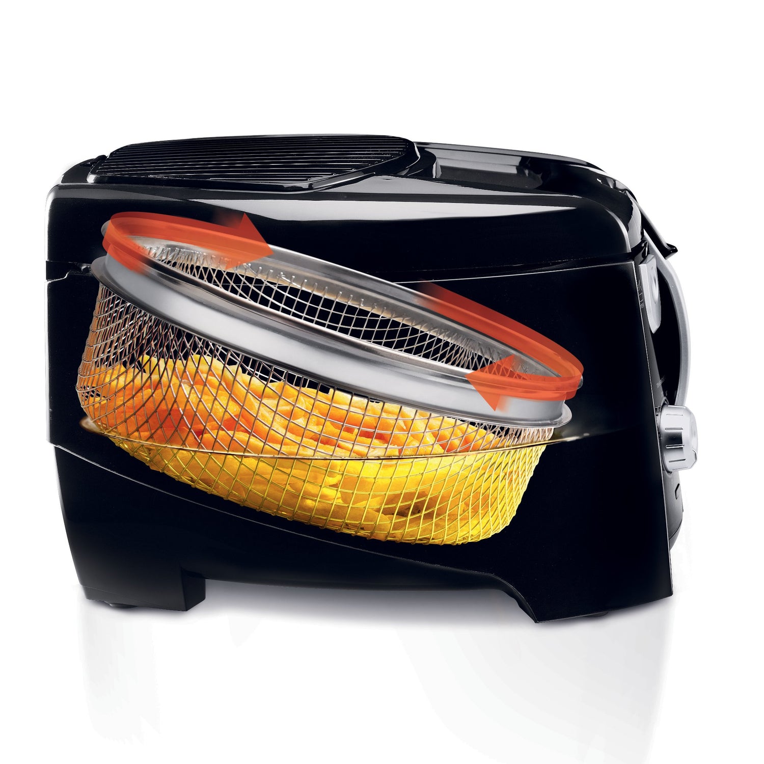 Dual filters keep odor and oil vapors from lingering in kitchen Rotating basket achivies crispier, healthier results. View larger Rotating Basket Design