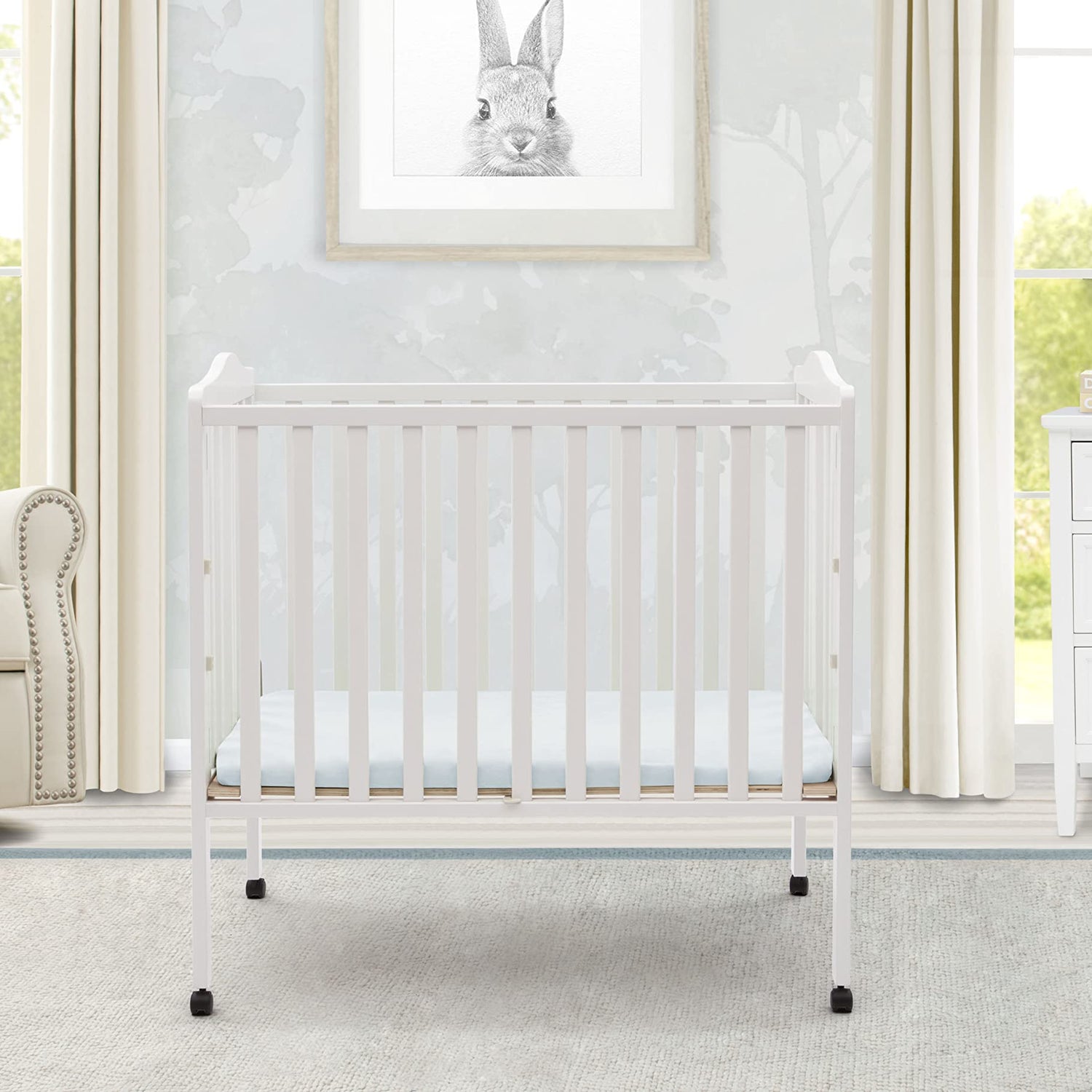 Delta Children Folding Portable Mini Baby Crib with 1.5-inch Mattress - Greenguard Gold Certified, White