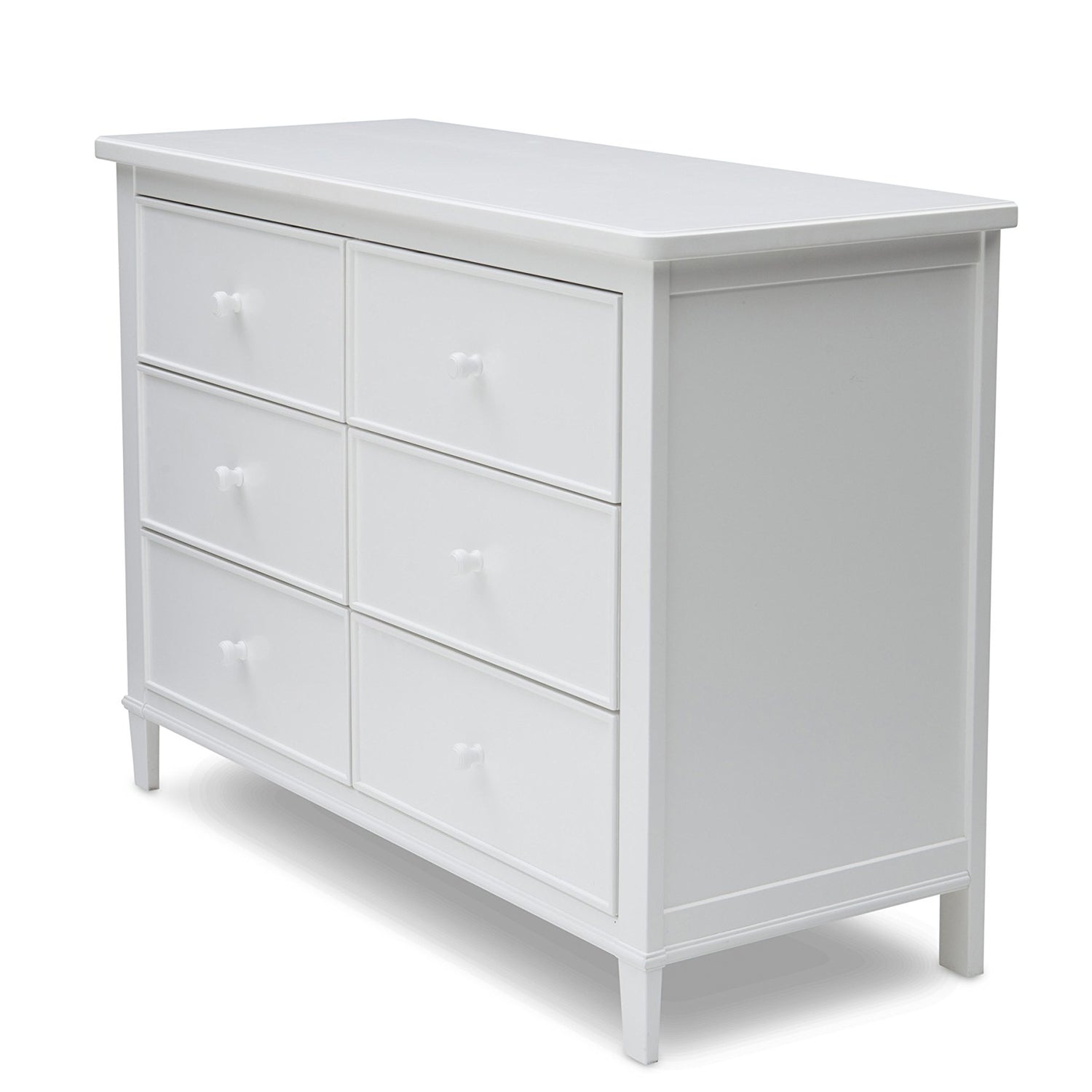 Details: The haven 6 drawer dresser by delta children offers classic storage for the nursery and beyond. Designed to outlast trends and changing tastes, it boasts six spacious drawers, smooth metal glides with safety stops to prevent drawers from falling out, plus clean, crisp lines that will never fall out of favor. Do not use abrasive chemicals.