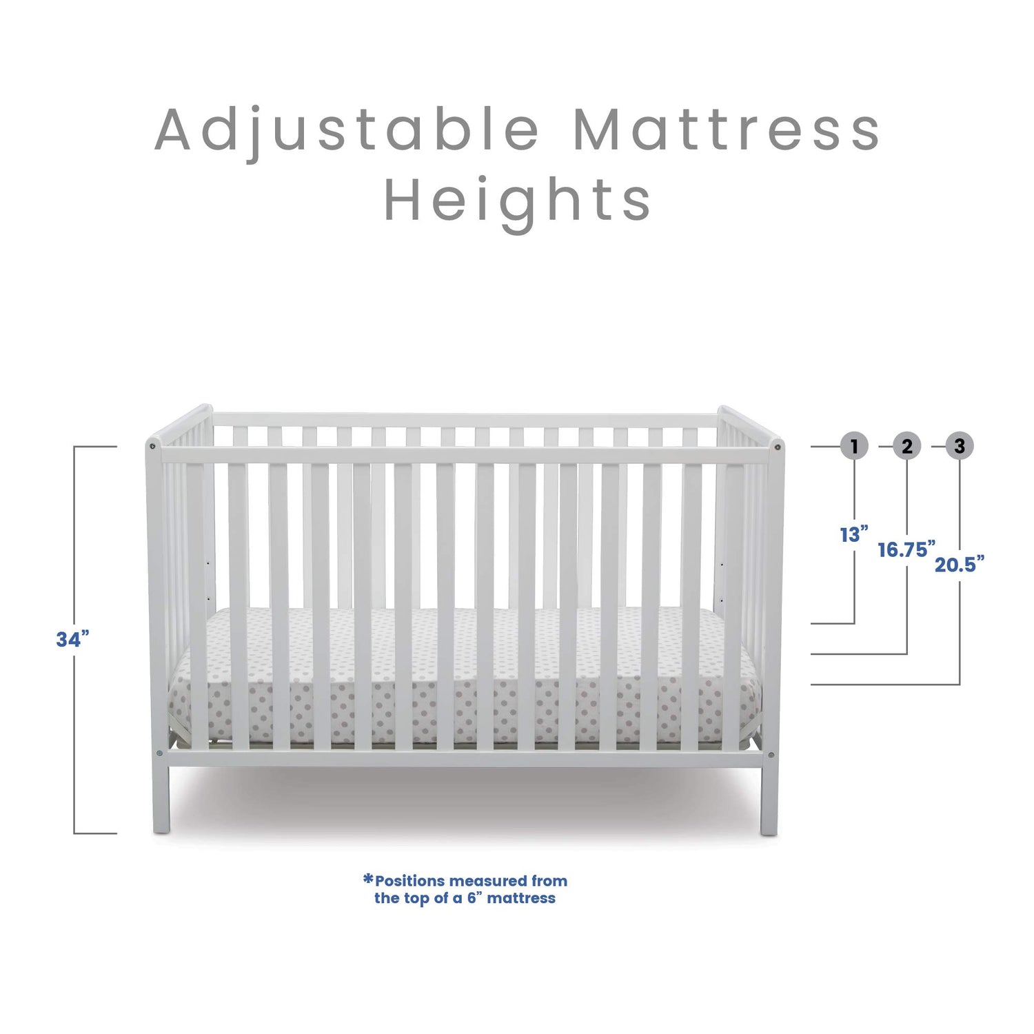 - GROWS WITH BABY: The 3 position mattress height adjustment on this crib allows you to lower the mattress as your baby begins to sit or stand