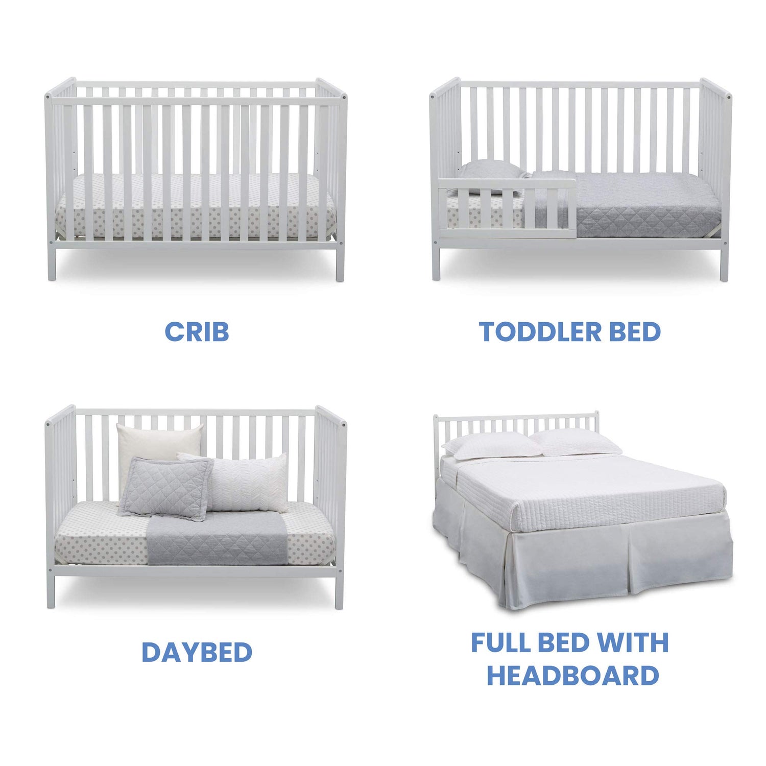 Details: Simple and understated yet full of charm, the Heartland 4-in-1 Convertible Crib from Delta Children works in modern or traditional nurseries-so many possibilities with this versatile baby crib! Designed with clean lines and open and airy slats that provide a clear view to Baby, this crib is constructed from sturdy wood that stands up to years of use. A great value, the Heartland 4-in-1 Crib features three mattress height positions, so you can lower the mattress height as your baby grows, plus it converts from a crib to a toddler bed, daybed and full size bed (Daybed/Toddler Guardrail Kit and Full Size Metal Bed Frame sold separately). Providing a safe and secure place for your child to sleep from birth till adulthood, this crib proves it's as functional as it is fashionable. Punched up with bold and playful hues that add a lively twist on the timeless silhouette, the Heartland 4-in-1 Crib from Delta Children makes it easy to create the nursery of your dreams. Available in multiple finishes. Delta Children was founded around the idea of making safe, high-quality cribs affordable for all families. That's why all Delta Children cribs are JPMA certified, and are tested above and beyond industry standards.