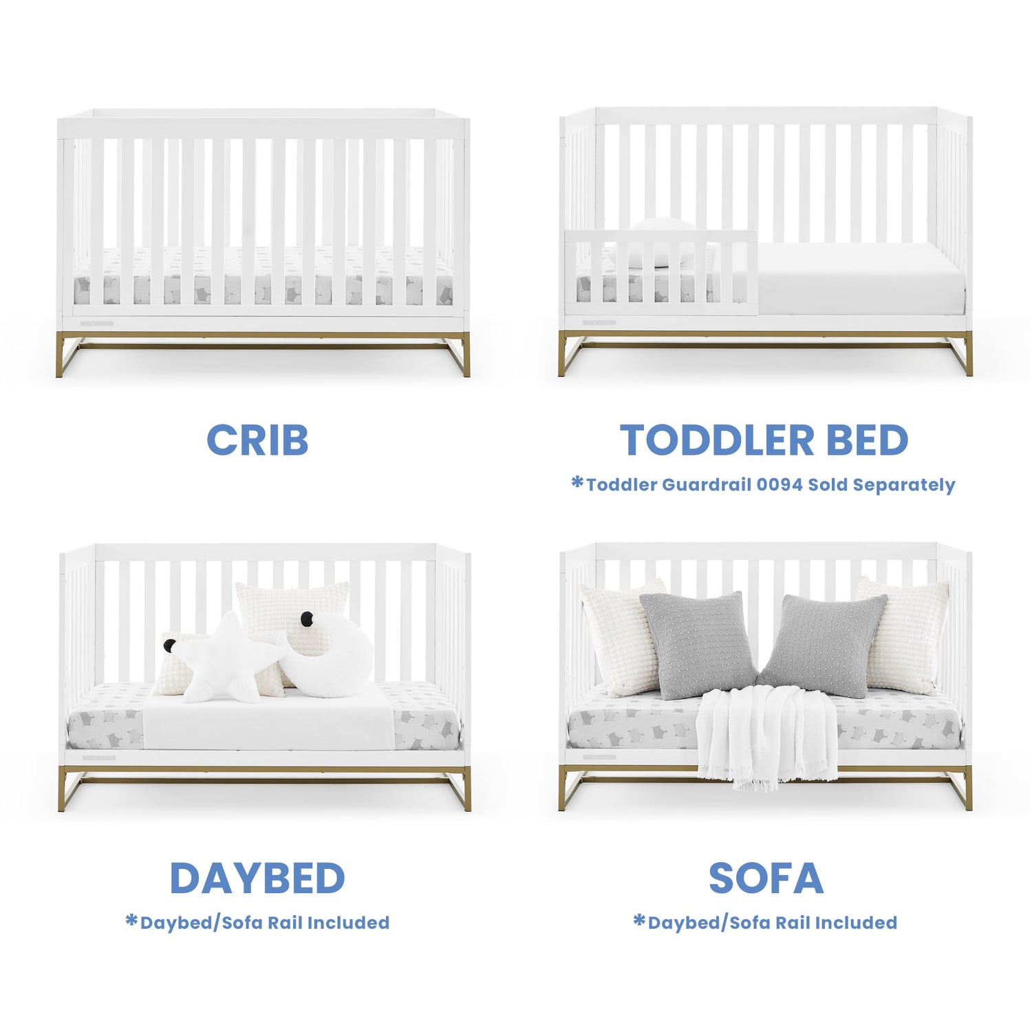 - 4-IN-1 CONVERTIBLE CRIB : Crib converts to a toddler bed, daybed and sofa (Daybed/Sofa Rail included, Toddler Guardrail #0094 sold separately) | Available in Bianca White w/Melted Bronze, and Ebony w/Melted Bronze