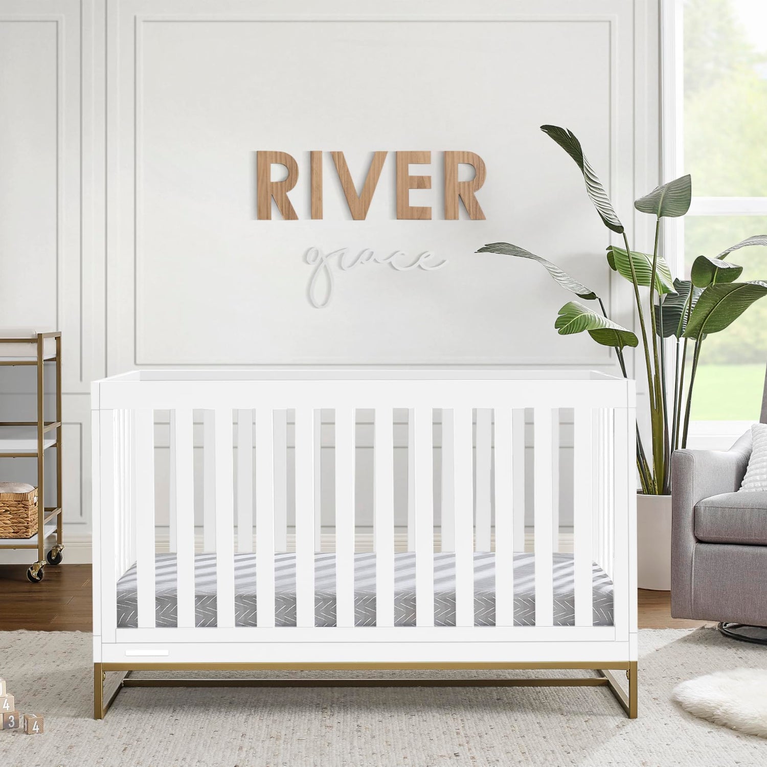 Delta Children Jade 4-in-1 Convertible Crib - Greenguard Gold Certified, Bianca White/Bronze