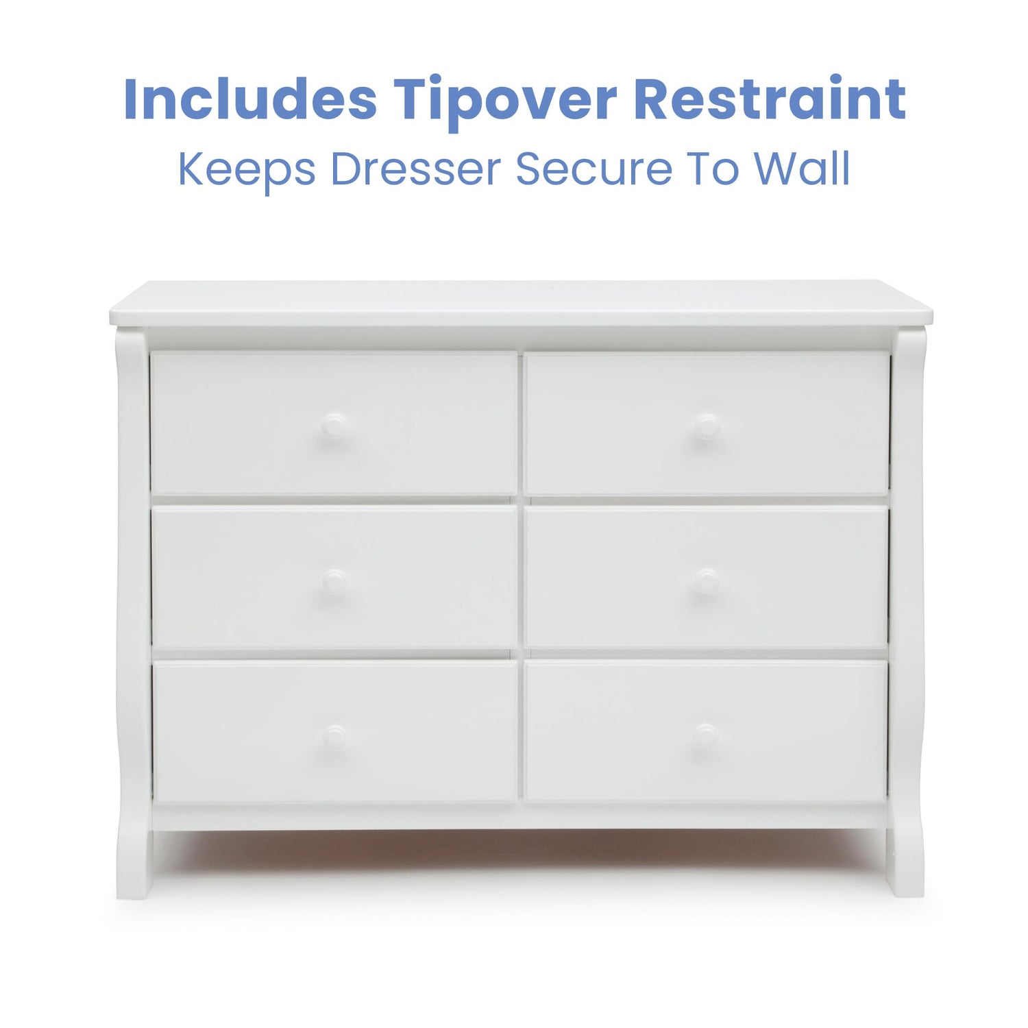 Delta Children Universal 6 Drawer Dresser with Interlocking Drawers - Greenguard Gold Certified, White