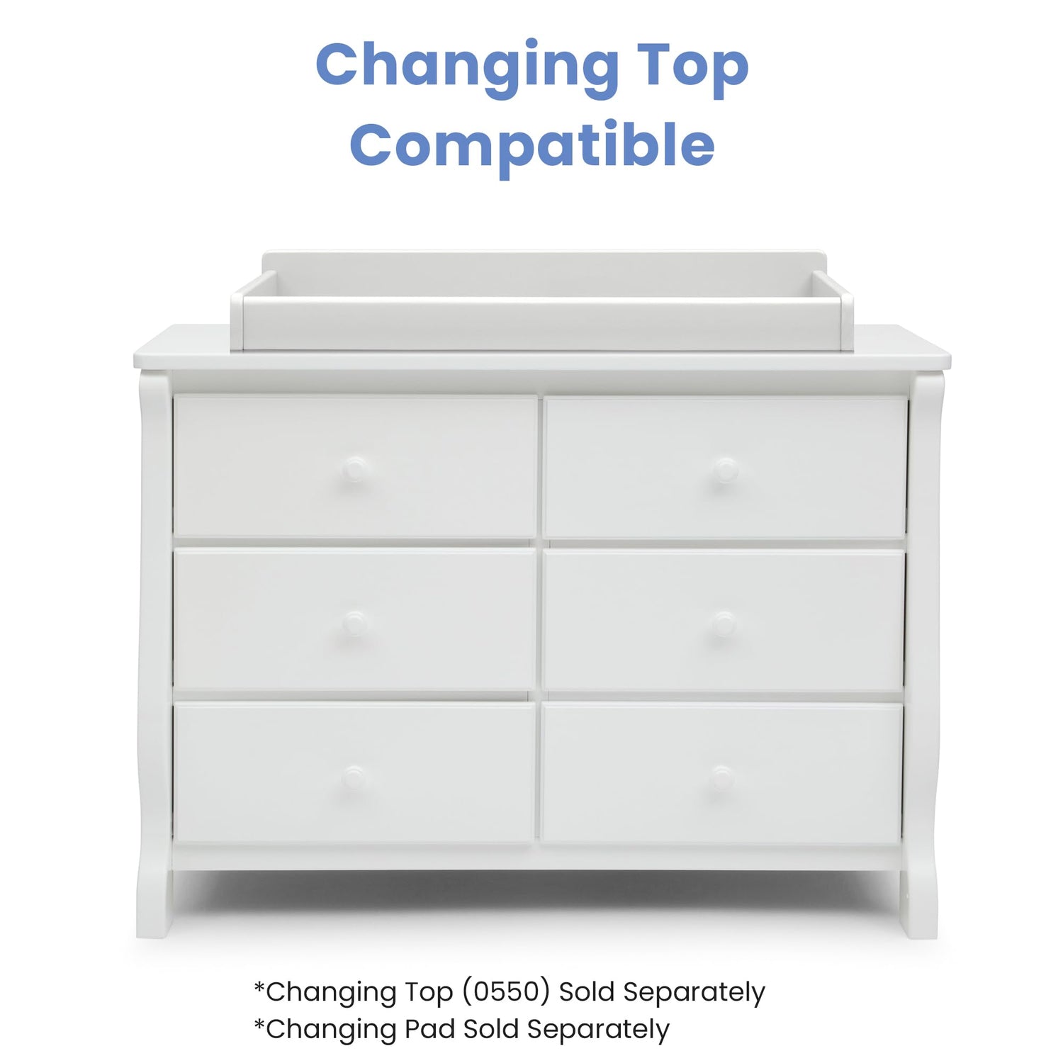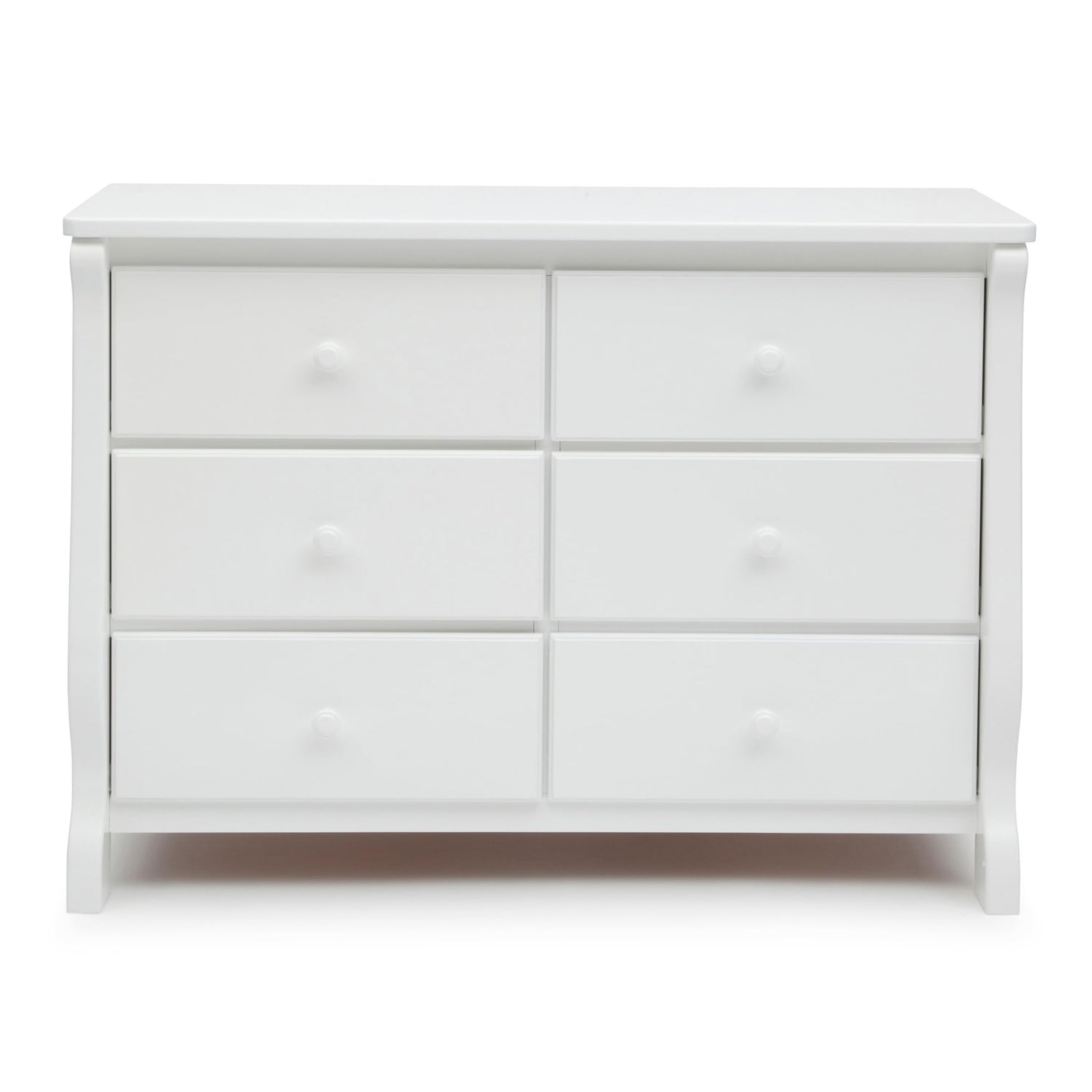 - VERSATILE STORAGE: This dresser features 6 drawers for plenty of storage space | Sleigh style silhouette offers timeless style | To convert your dresser into a convenient changing table purchase the Delta Children #0550 Topper (sold separately)
