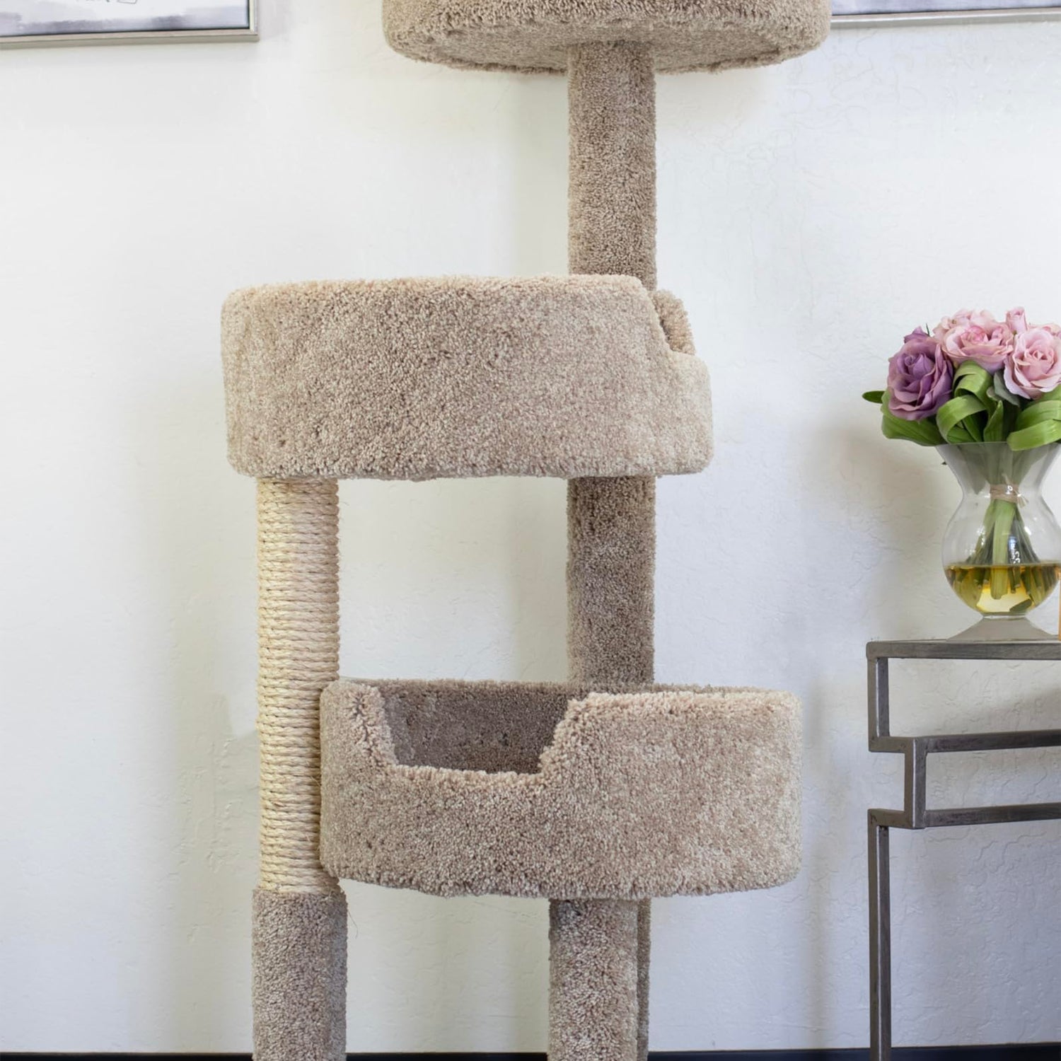 Details: New Cat Condos 52" Deluxe Large Cat Tree is a multi-level cat tower that has a height of 52 inches for your active kitty to play and relax! Each level is made up of plush, three separate 7 inch deep beds to provide your kitty with a safe and luxurious surrounding. This Cat Tower also comes with a durable sisal rope post which promotes healthy nails and scratching behaviors. This piece of cat furniture requires minimal assembly, and is proudly made in the USA.