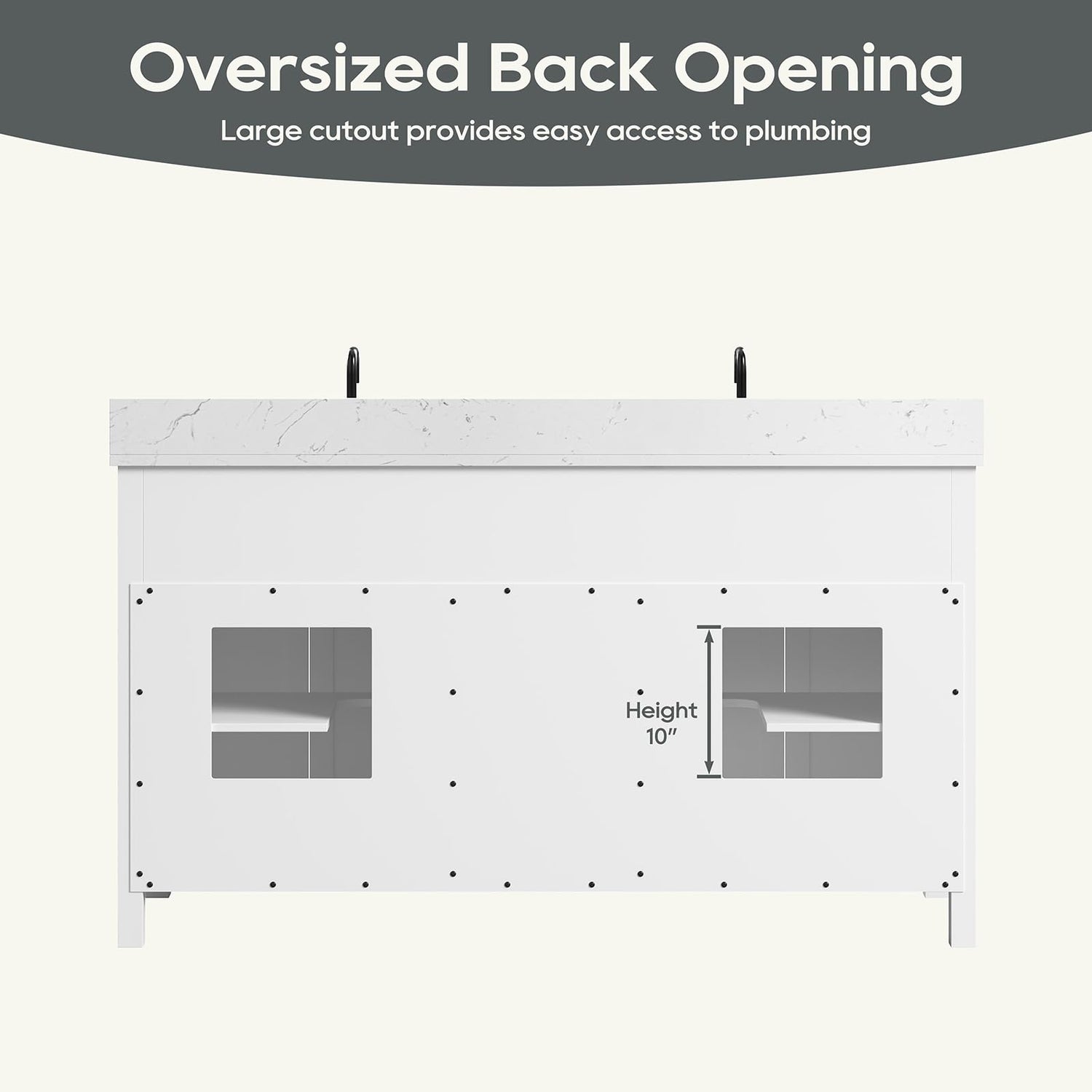 - Long-Lasting Bathroom Vanity - Our 60 inch bathroom vanity with double sink is crafted from MDF and solid wood, offering robustness and steadiness.