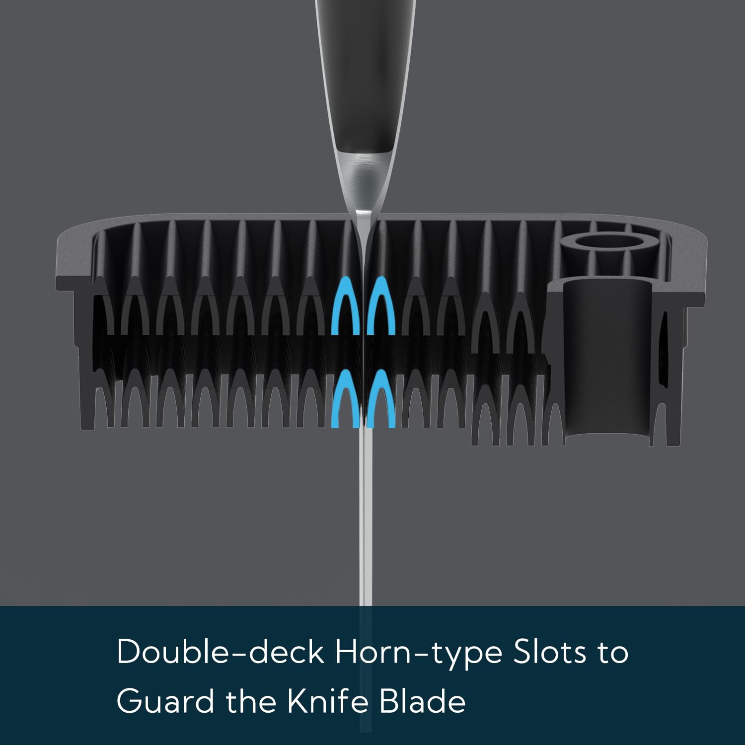 - ✔Double-deck System & Parallel Slots: Double deck holds your knives securely. Parallel slots separate the knife edges so that the knives won't touch each other. No potential risk of damaging the knife edges in the block