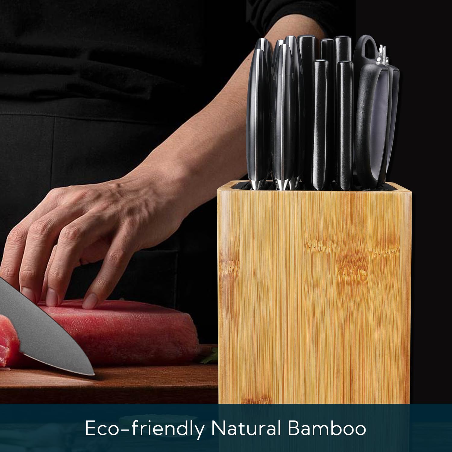 Deluxe Universal Knife Block with Slots for Scissors and Sharpening Rod - Eco-Friendly Bamboo Knife Holder For Safe, Space Saver Knives Storage -