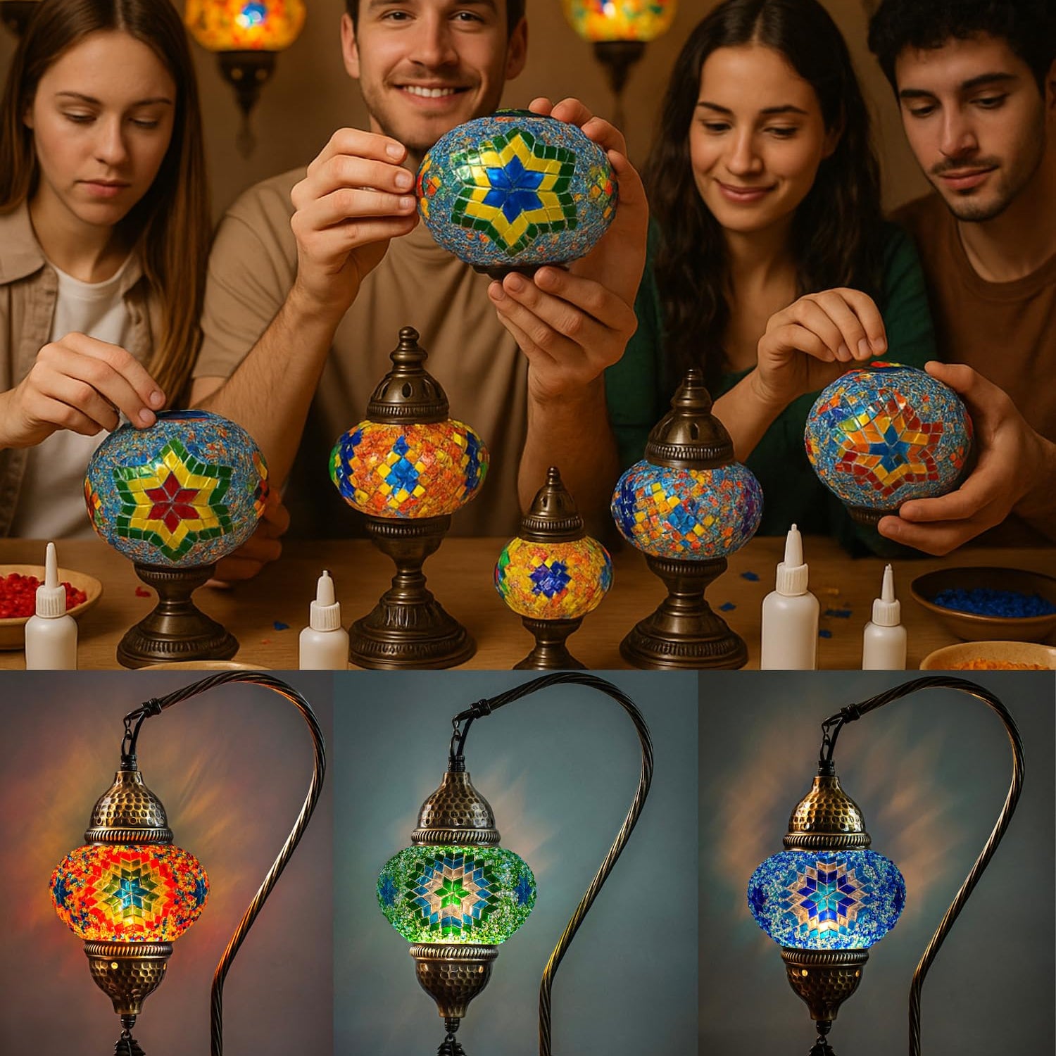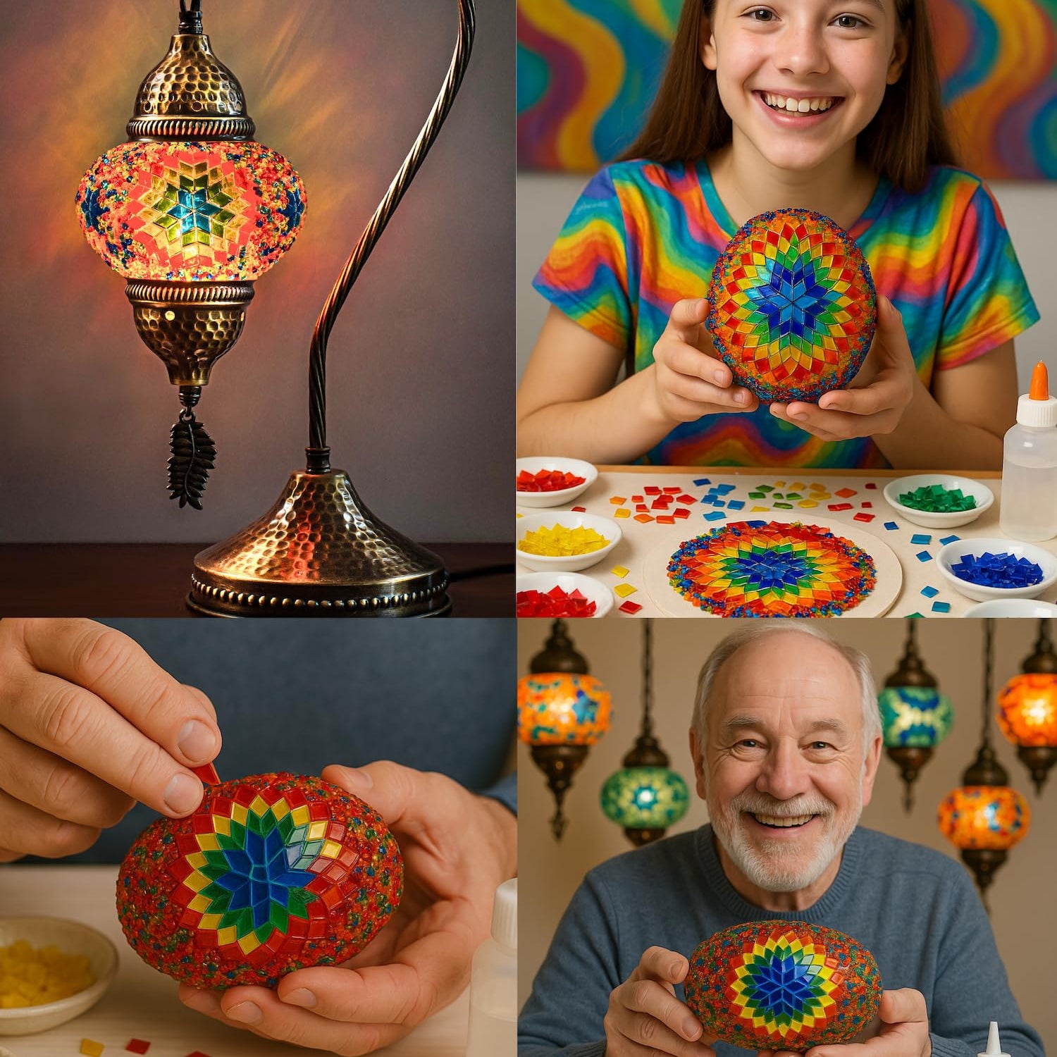 - CREATE YOUR OWN MASTERPIECE – Craft a stunning, handmade Turkish mosaic lamp using vibrant hand-cut glass pieces and colorful decorative beads included in the kit.