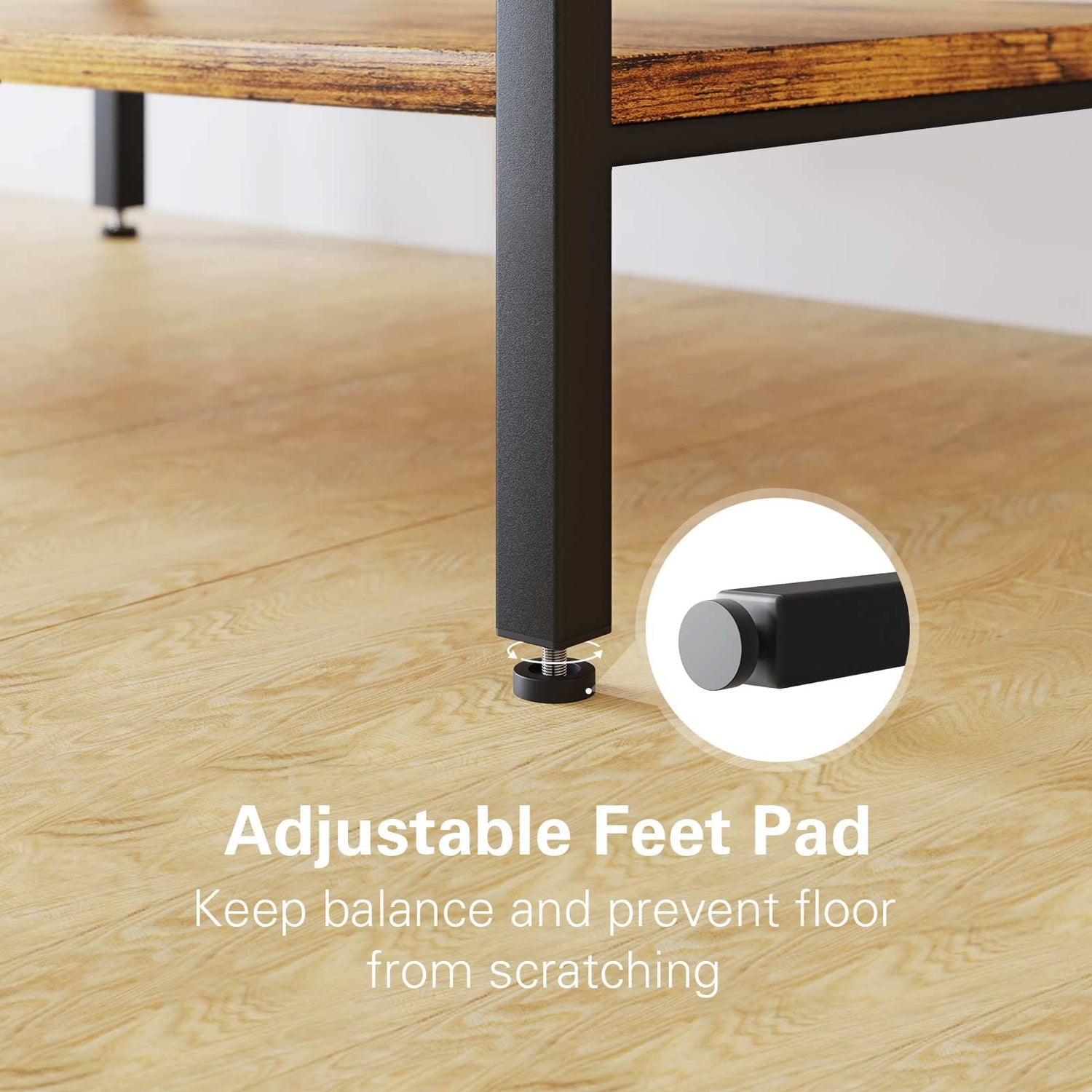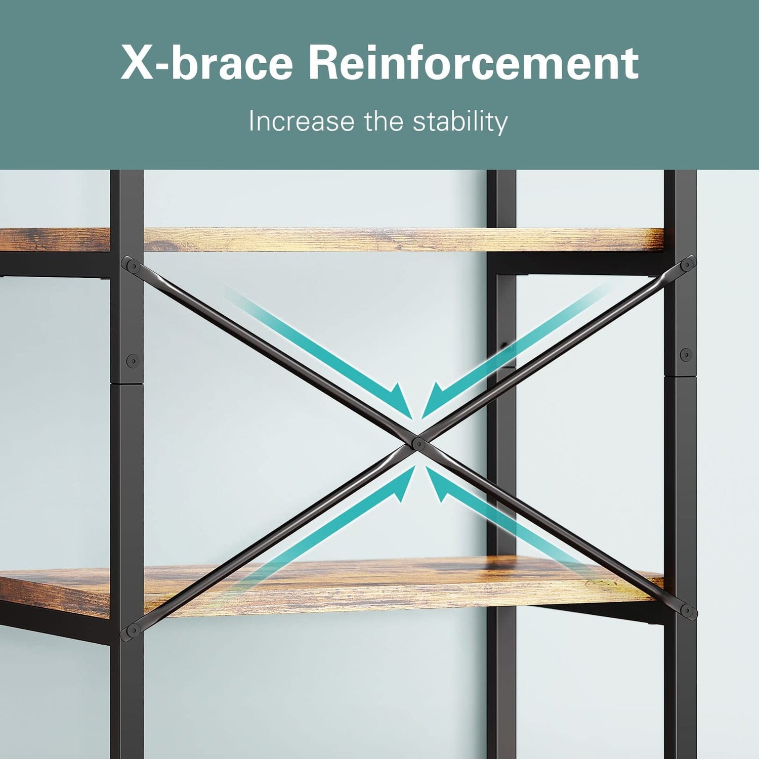The stable structure of this microwave stand includes adjustable feet, allowing it to remain balanced on uneven floors. The guard rails on the top three tiers help prevent smaller items from falling, while the X-brace structure further enhances its stability.