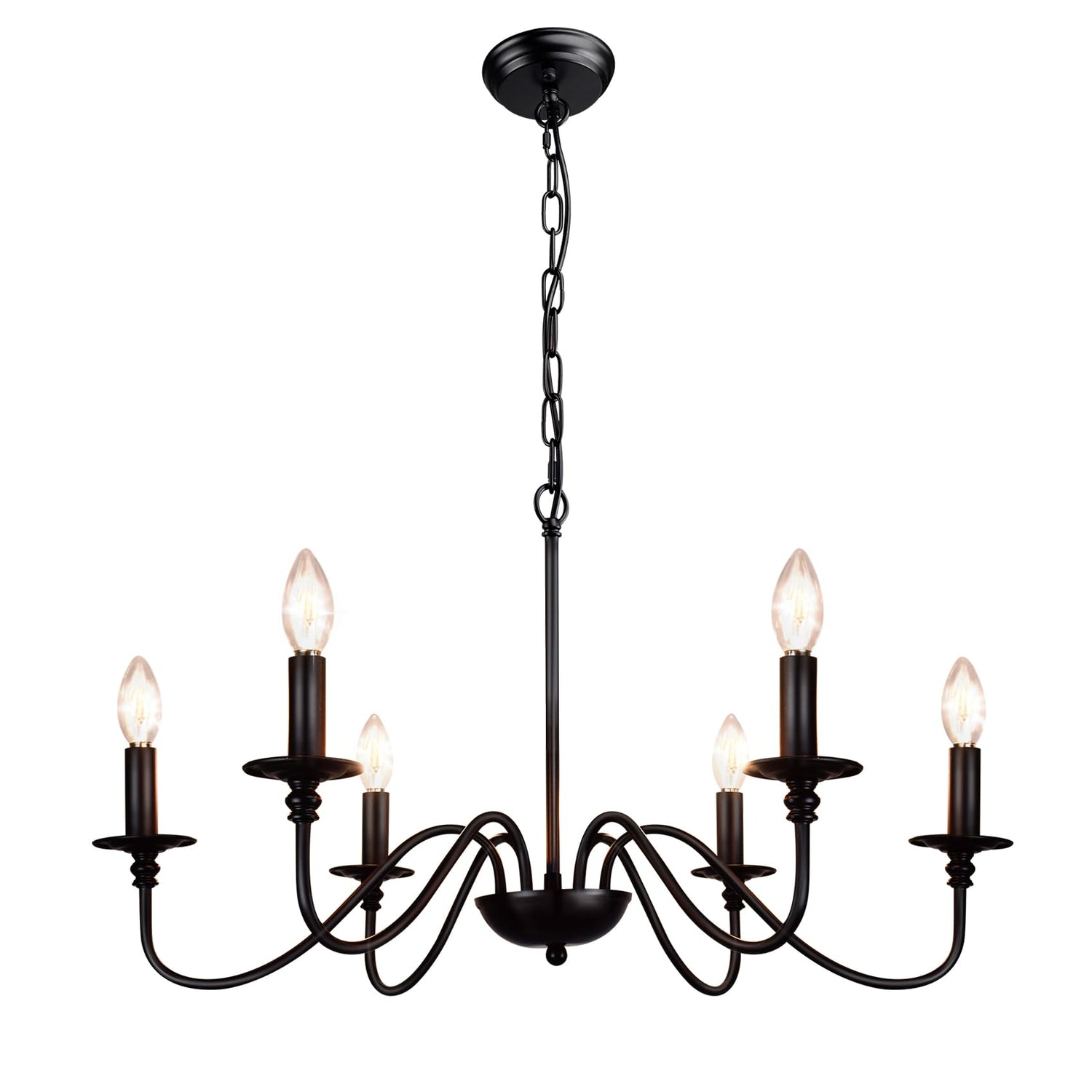 Depuley Farmhouse Chandelier for Dining Room: 6-Light Black Industrial Kitchen Island Pendant Light Fixture with 6 E12 Bulbs - Rustic Candle Chandeliers Vintage Modern Hanging Ceiling Lamp for Bedroom