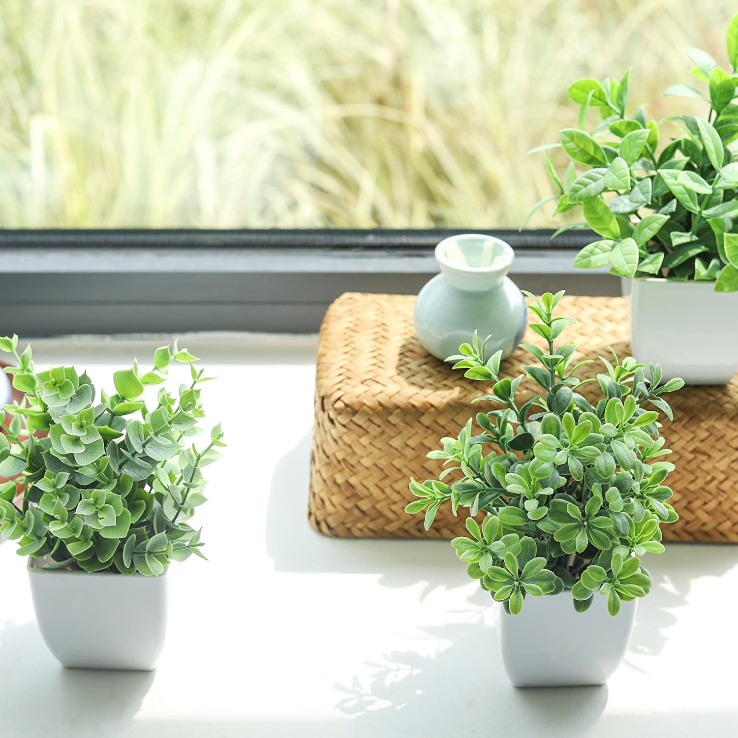 - Fake Plants Decor: The small plants can be used in any scene. You can put these plants on windowsill, office,kitchen,desk, bathroom or put them in office to decorate your place well,it's also perfect centerpiece table decorations
