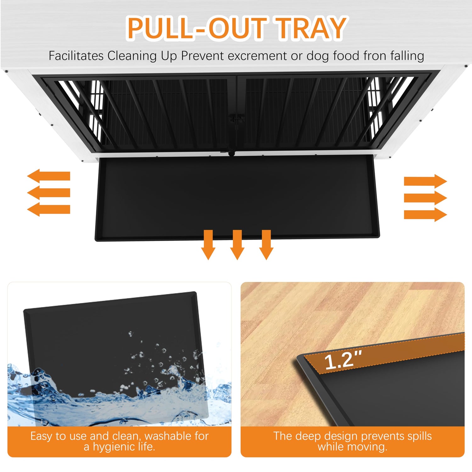 Derfullo Dog Crate Furniture, Large Dog Crate Furniture, Wooden Cage Kennel Furniture Indoor, Modern Dog Crate with Multi-Purpose Removable Tray, Double-Doors Dog Furniture, End table dog crate, White