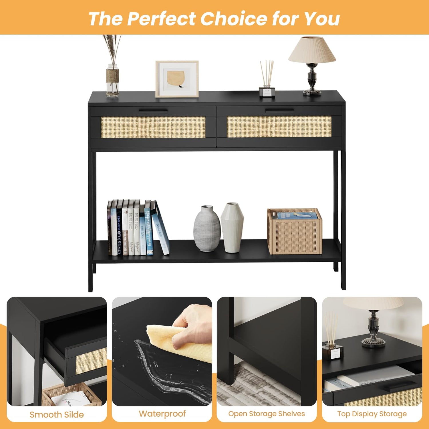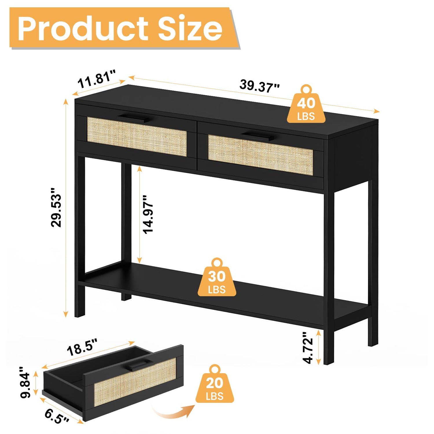 - 【Rattan Console Table】 Designed with natural wood grain and a clear texture. The surface of the drawers adopts rattan weaving style, add an elegant and modern touch to your house, blends well with any style decor and complete your living space with this hall console desk.