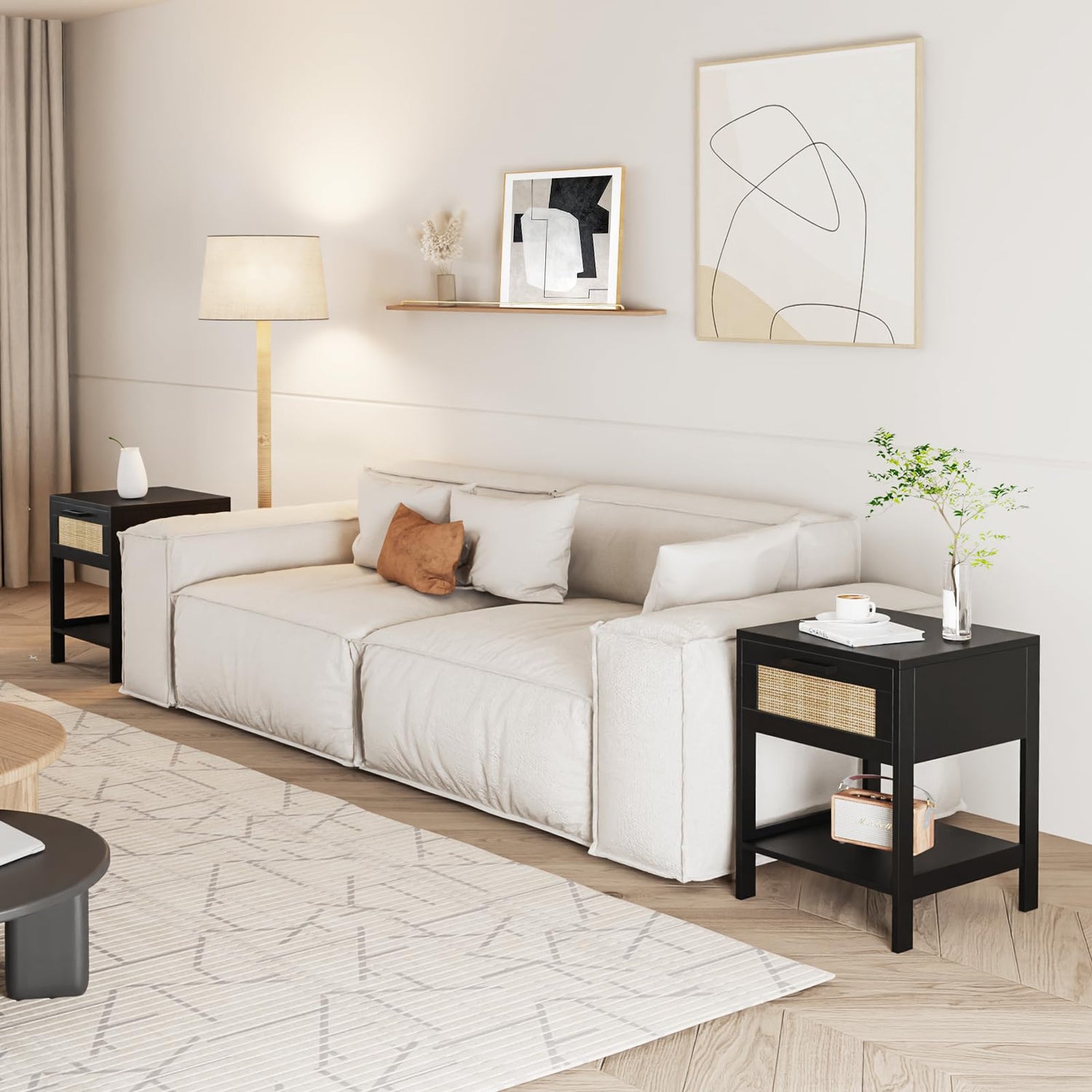 - 【Ample Storage Space】The nightstand have a rattan decorated spacious drawer and open shelves that provide ample storage space. The surface of the side table is large enough to place a table lamp on it, as well as remote controls, cups, magazines, etc. The open top shelf is perfect for displaying picture frames and plants. Ideal for your bedroom and living room, making the space more tidy and orderly.