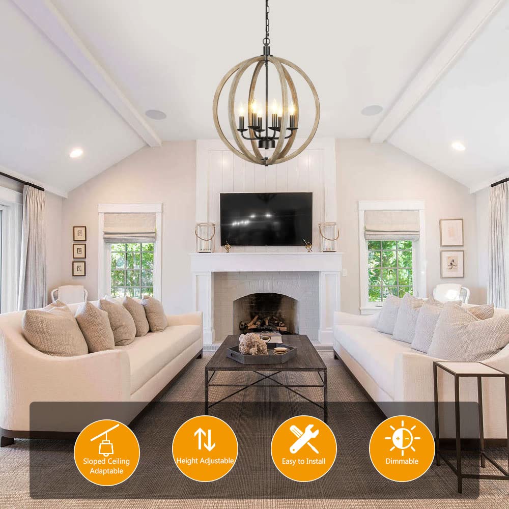 - ✅Well-match: Rustic vintage chandelier features a combination of metal,distressed oak finish that withstand the test of time. It adds sophisticatio for living room, dining room, bedroom, foyer, entryway, kitchen or hallway, making the place warm, cozy and welcoming