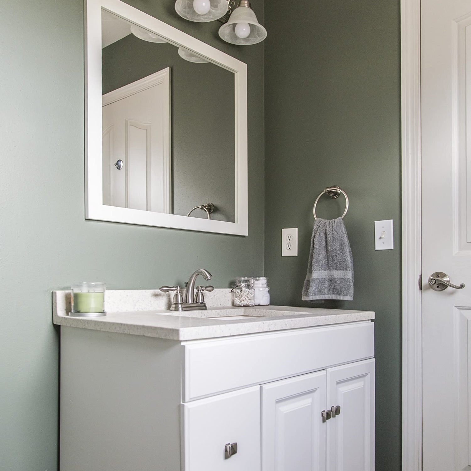 - Classic Design: Raised paneling on door and drawer fronts with satin nickel cabinet knobs blend seamlessly with a variety of decor styles; vanity top not included so you have the freedom to choose a 37-inch by 19-inch vanity top that suits your style