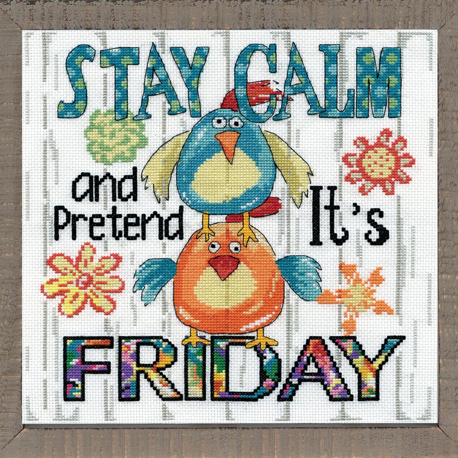 Design Works Crafts, 10" x 10" Counted Cross Stitch Kit, Stay Calm, White