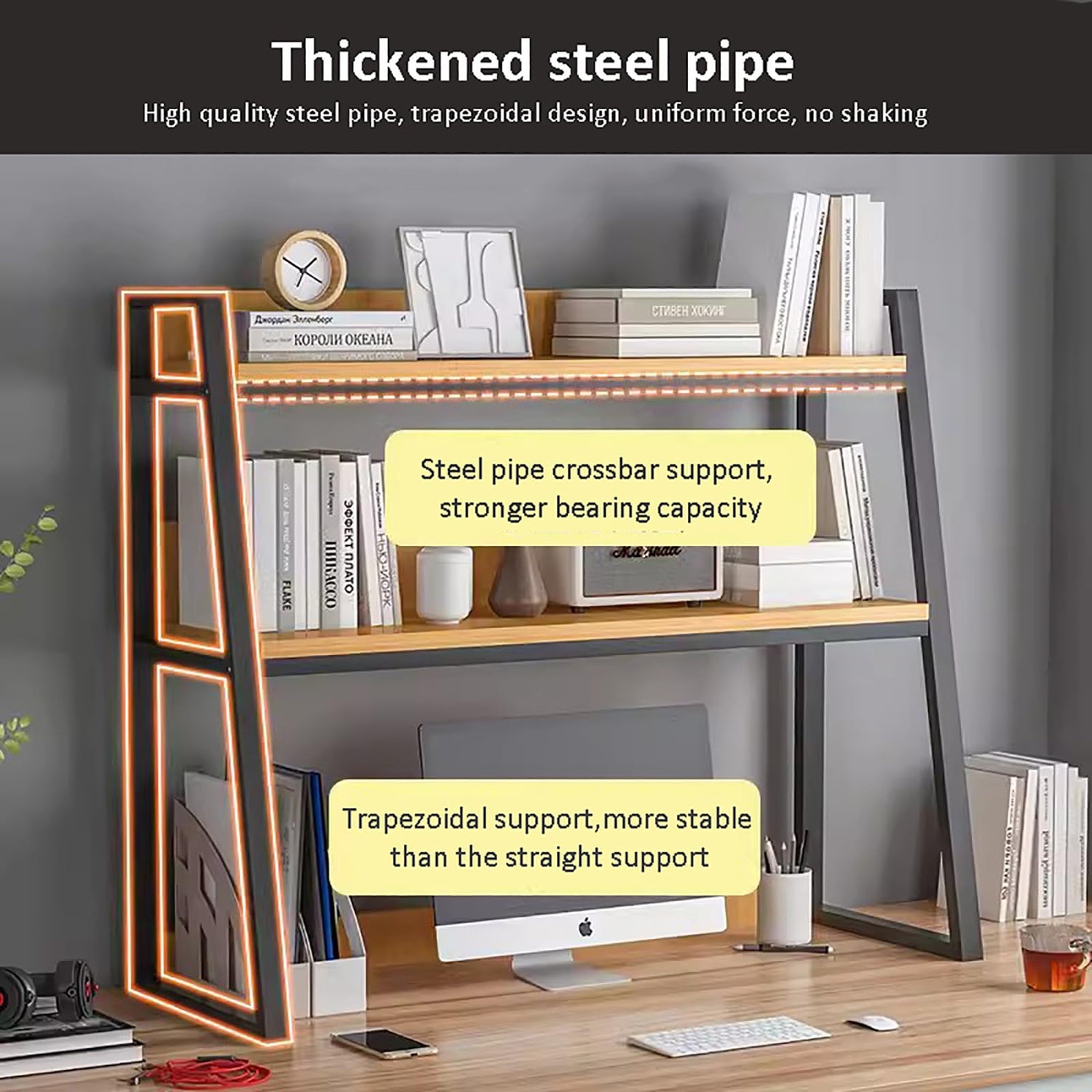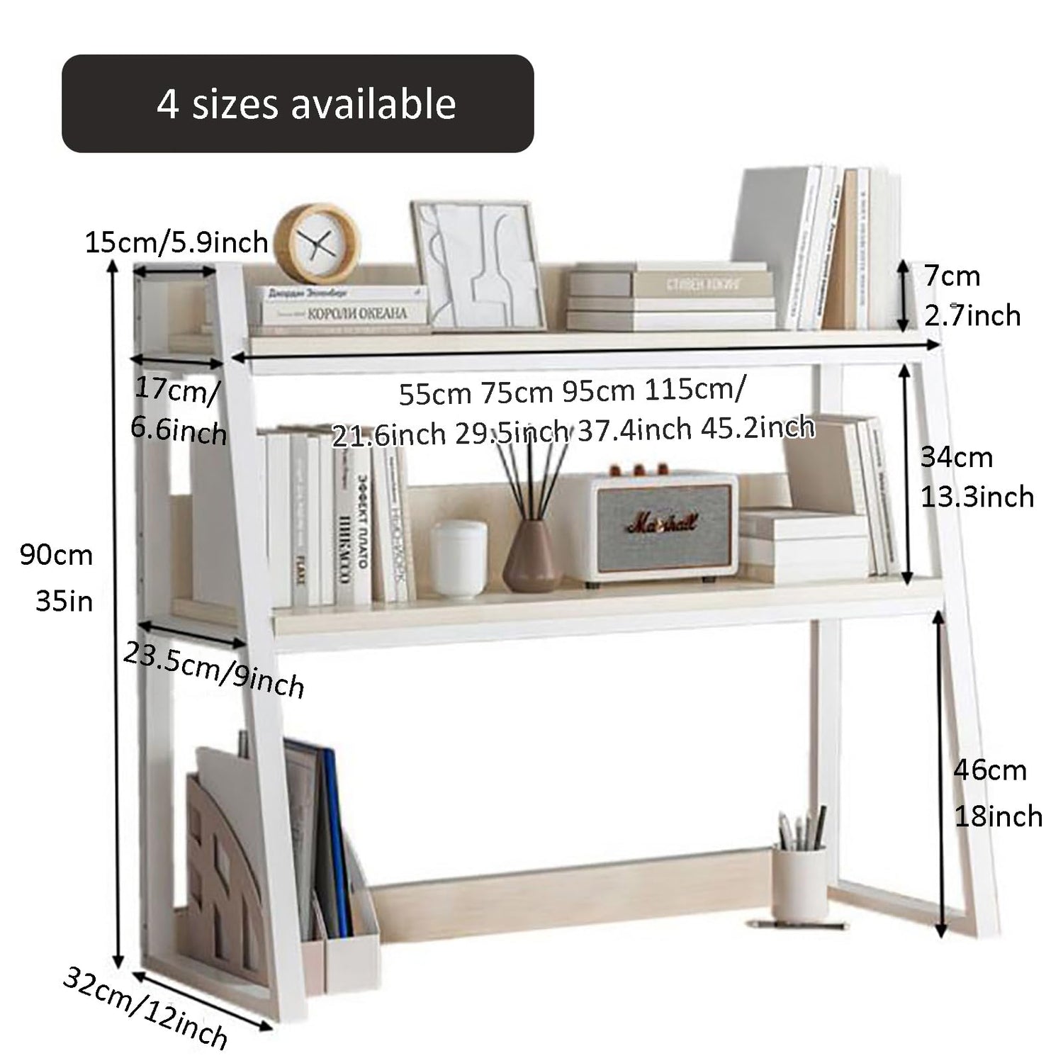 Desktop Bookshelf and 2-Tier Hutch Organizer for Efficient Workspace Storage