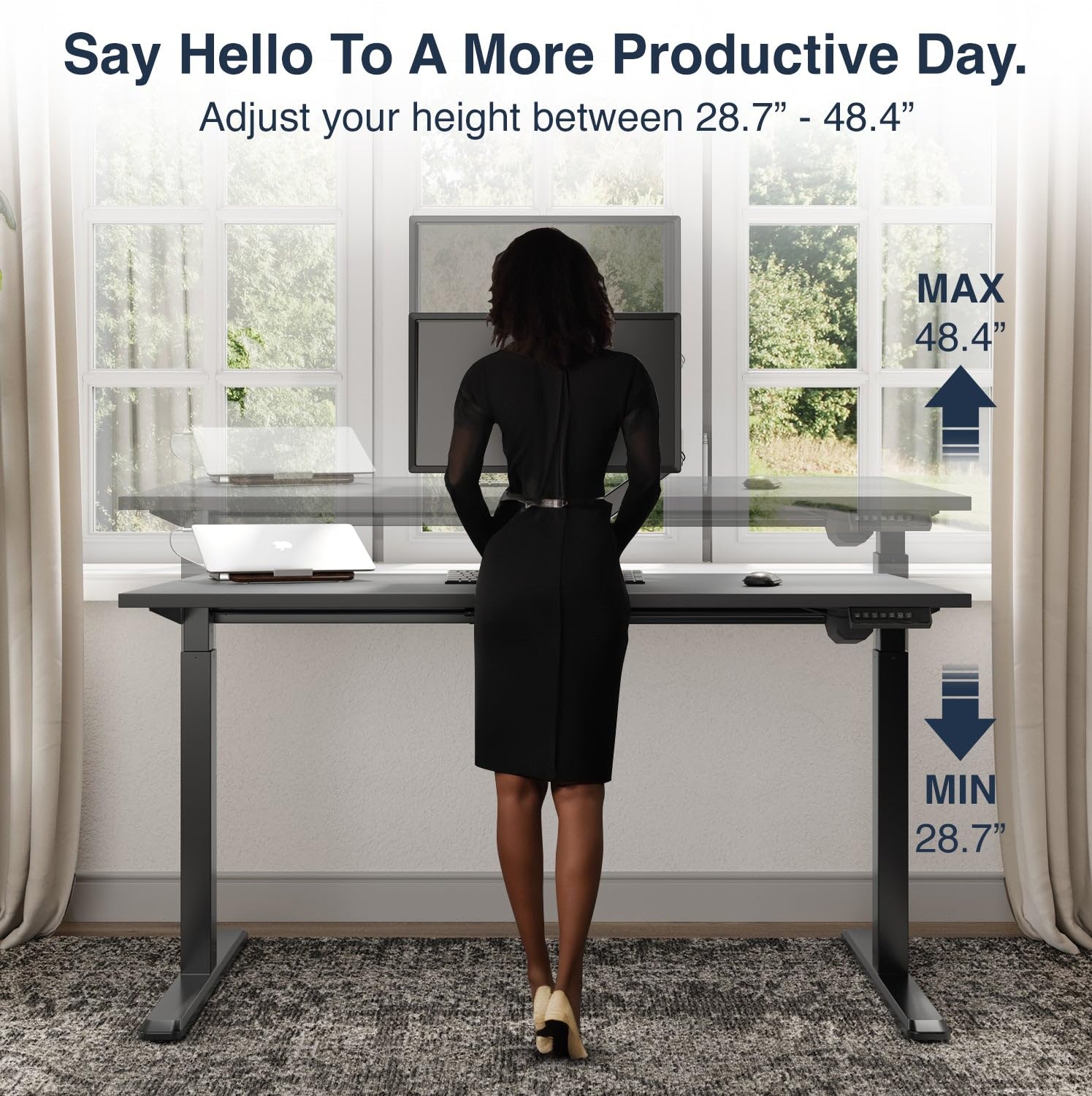 - Easily switch between your favorite positions at the touch of a button, thanks to the three preset heights feature of our stand up desk with electric adjustments.