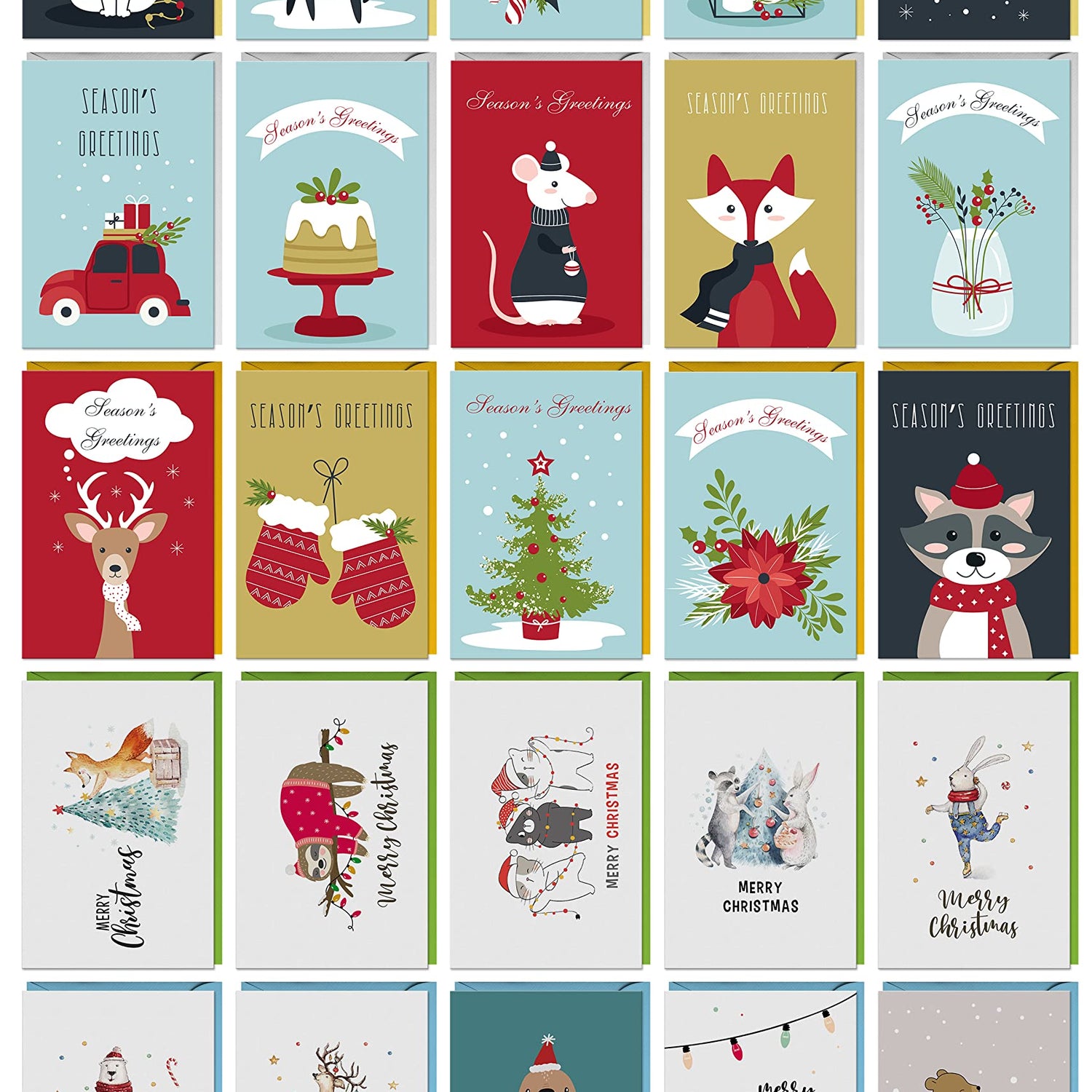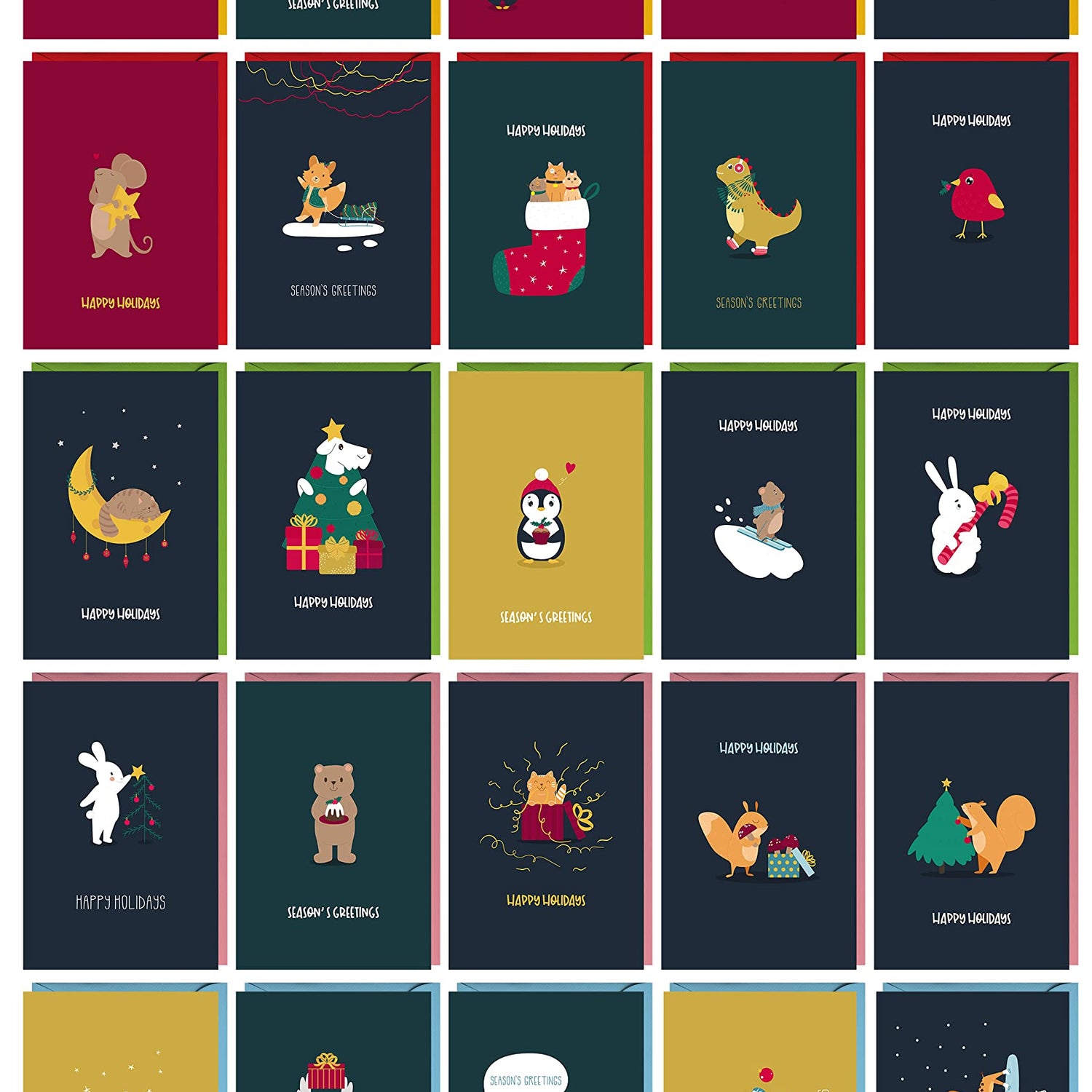 - Short Greetings Inside: Each christmas, holiday and seasons greeting cards assortment comes with a short, cheerful, greeting on the inside with room to add additional sentiments if desired.